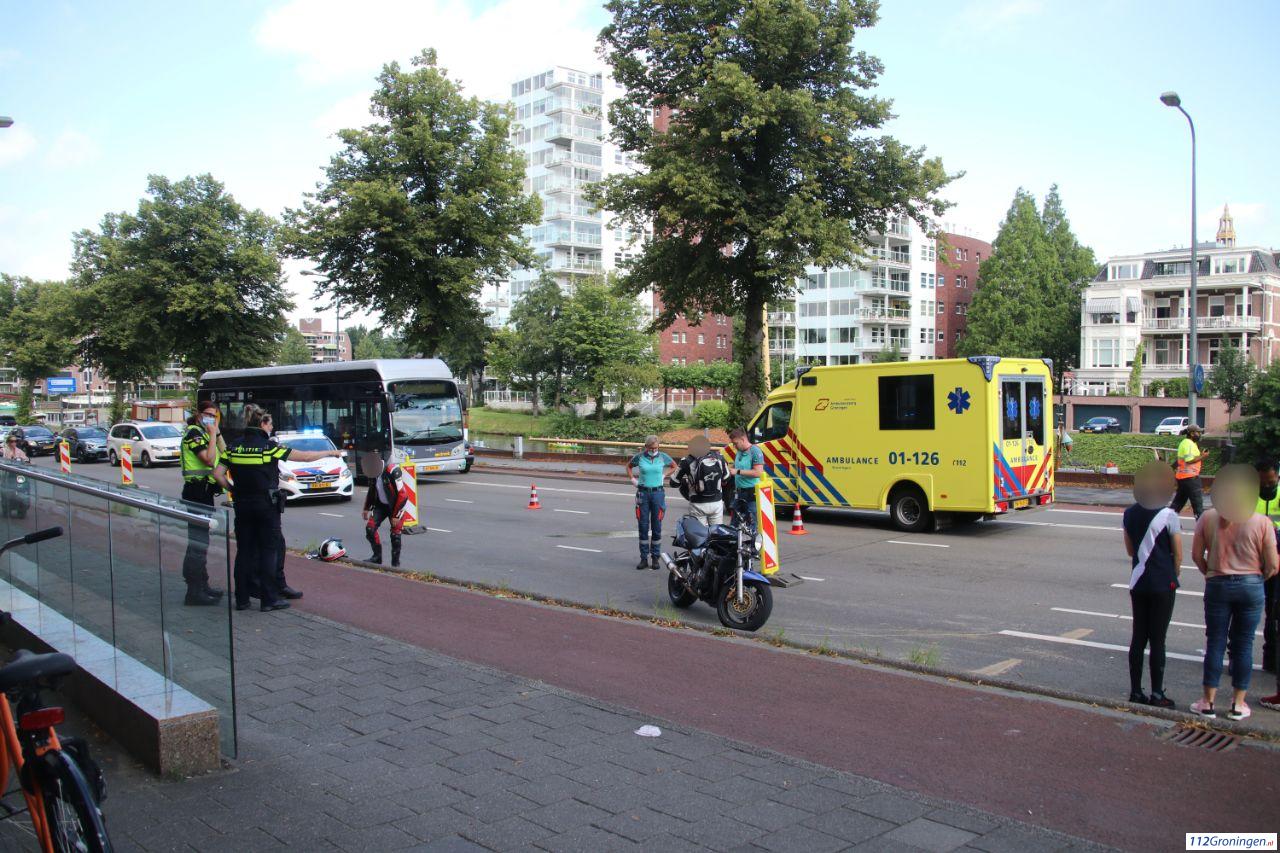 Bij een verkeersongeval op de Emmasingel in de stad Groningen zijn zondagochtend twee motorrijders licht gewond geraakt.