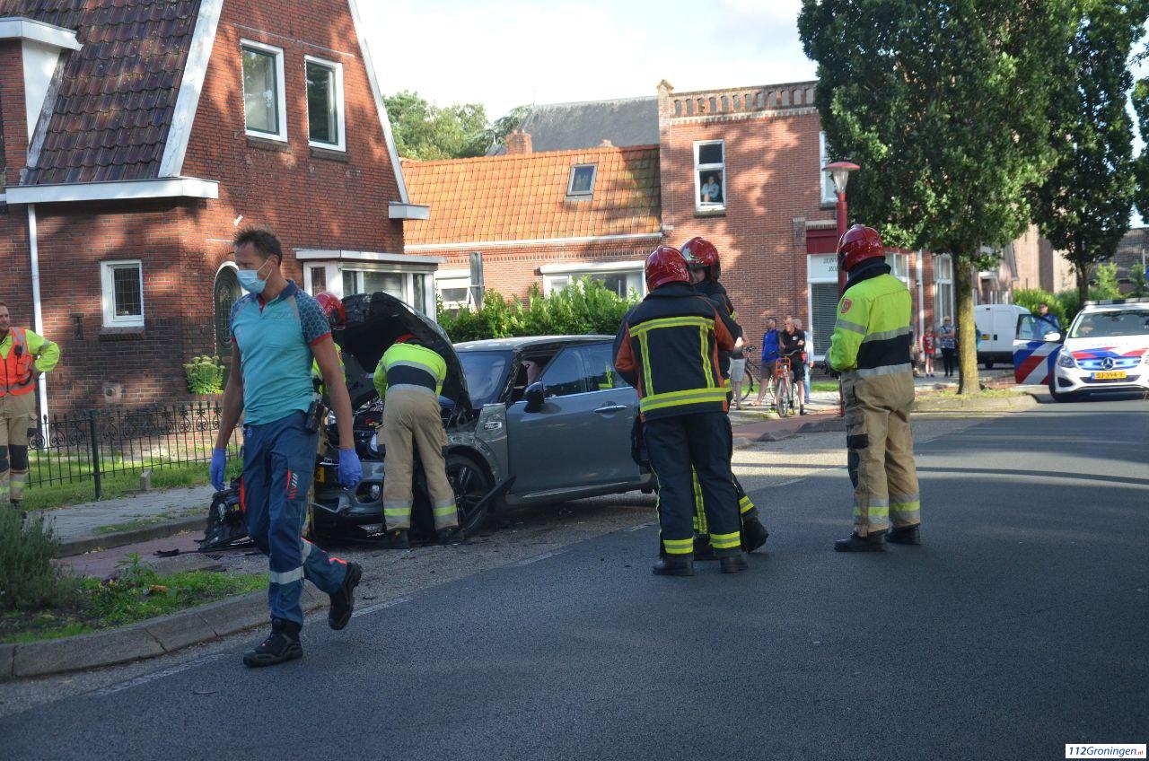 Rond vijf over half zeven werden de hulpdiensten opgeroepen voor het verkeersongeval. Een personenauto was door een nog onbekende oorzaak tegen een geparkeerde bestelwagen gebotst. Hierbij kwam de bestelwagen een kleine twintig meter verderop op het trottoir tot stilstand.