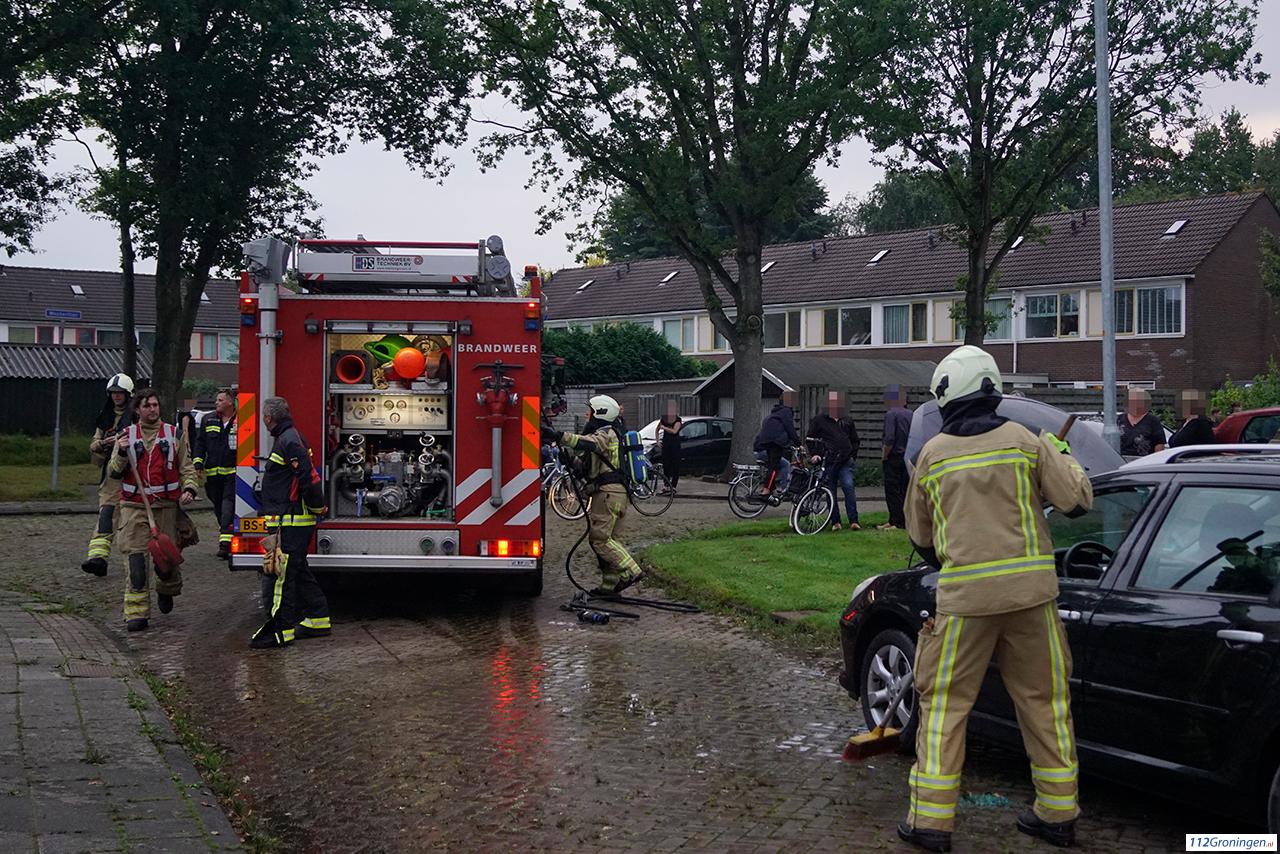 Omstanders waren al begonnen met blussen met een tuinslang. De brandweer heeft de brand verder afgeblust.