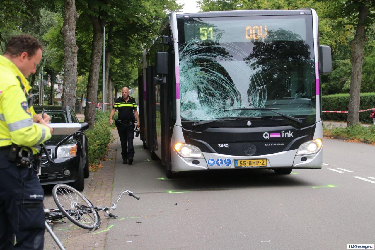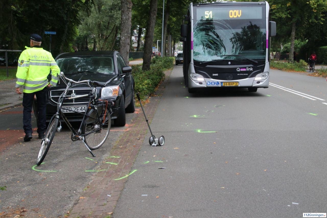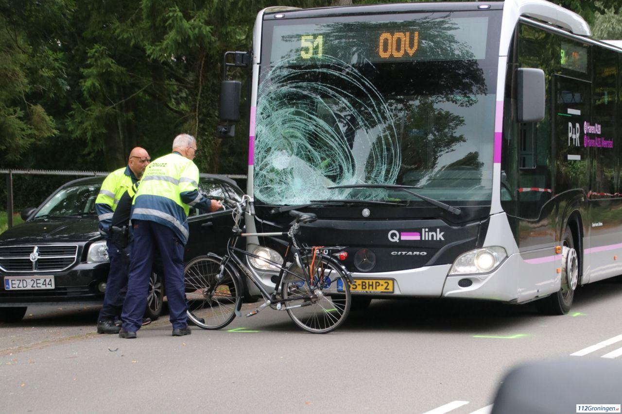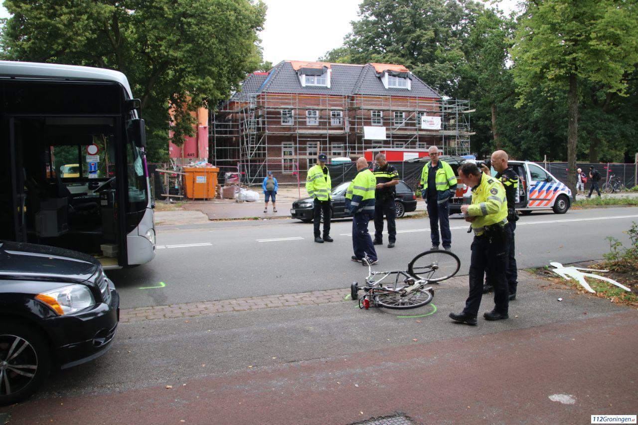 Op de Verlengde Hereweg in Groningen zijn woensdagmiddag een fietser en een lijnbus met elkaar in botsing gekomen.