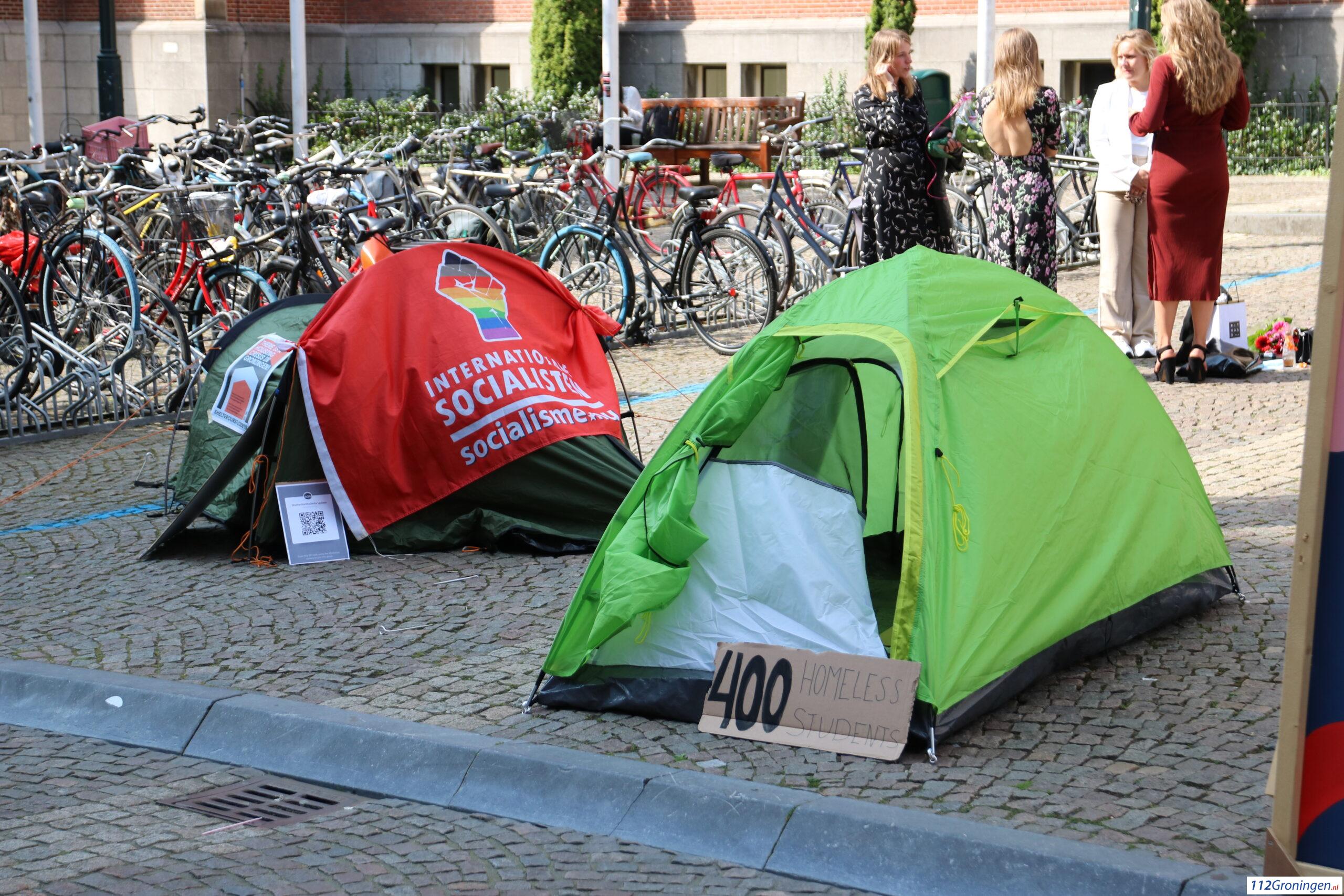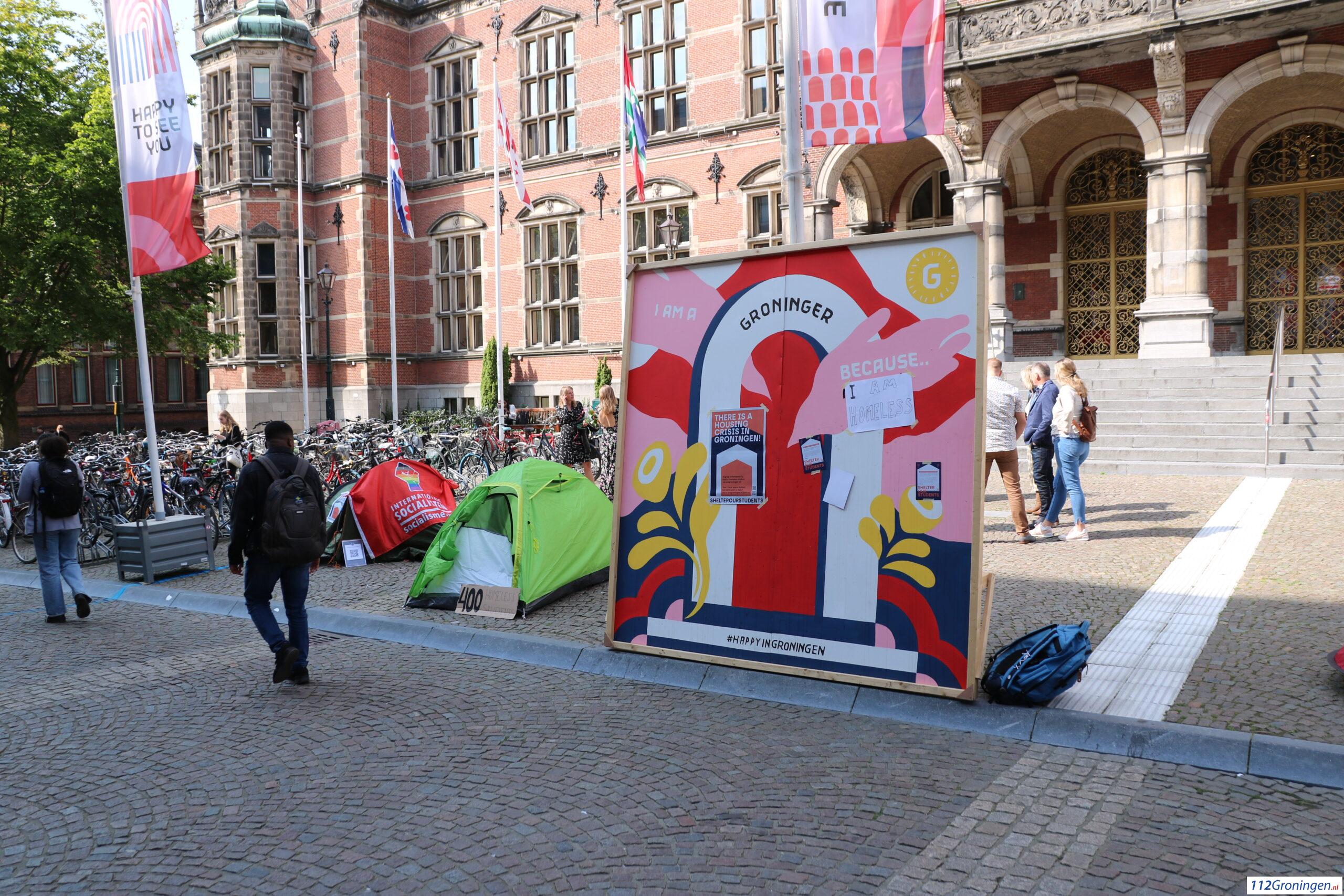 Ruimere noodopvang, een campus op het Zernike-terrein en betere communicatie voor internationale studenten. Die boodschap wilde Shelter Our Students vrijdagmiddag aan de gemeente Groningen en de Rijksuniversiteit Groningen duidelijk maken met een tentenkamp voor het Academiegebouw. Dat schrijft oogtv.nl.