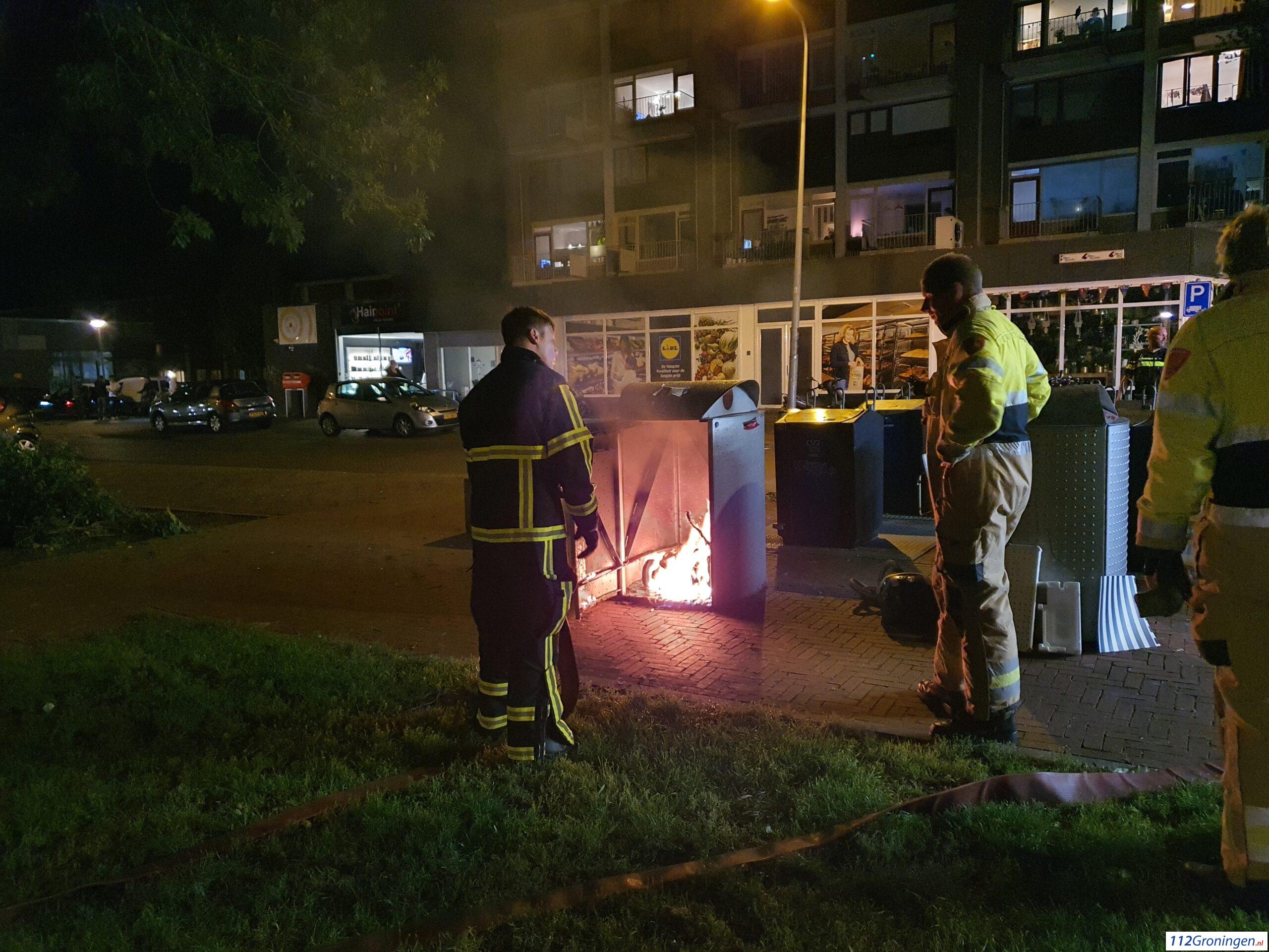 Groningen – Vrijdagavond werd de brandweer van de stad Groningen gealarmeerd voor een containerbrand aan de Van Lenneplaan.