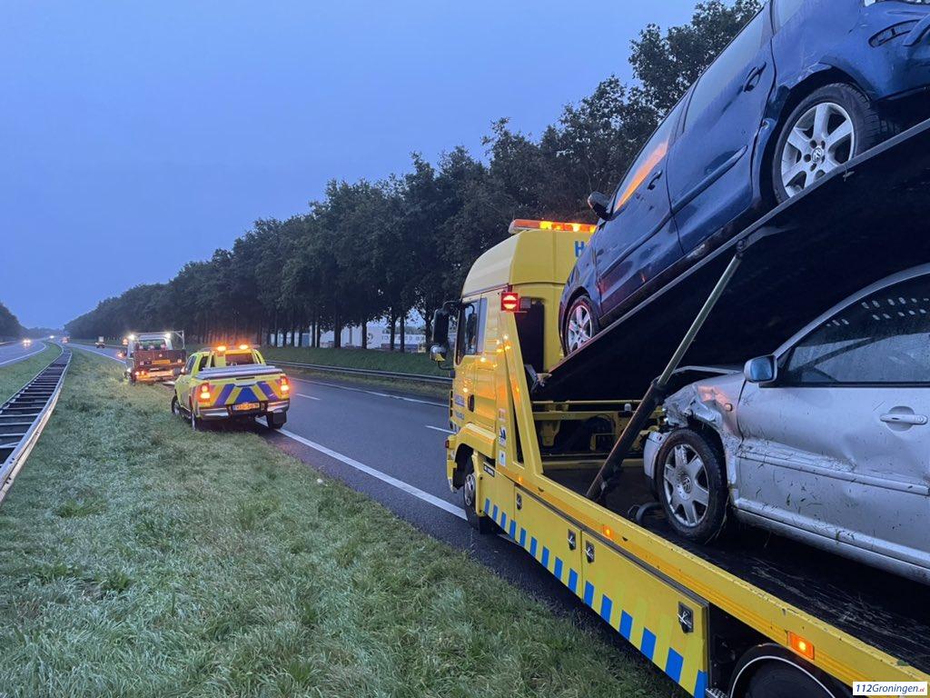 De toedracht is niet bekend. De betrokkenen zijn gecontroleerd door een ambulance meldt Rijkswaterstaat via Wis_Jeroen1 op Twitter. Niemand hoefde naar een ziekenhuis worden gebracht. Een berger heeft de auto’s afgesleept.