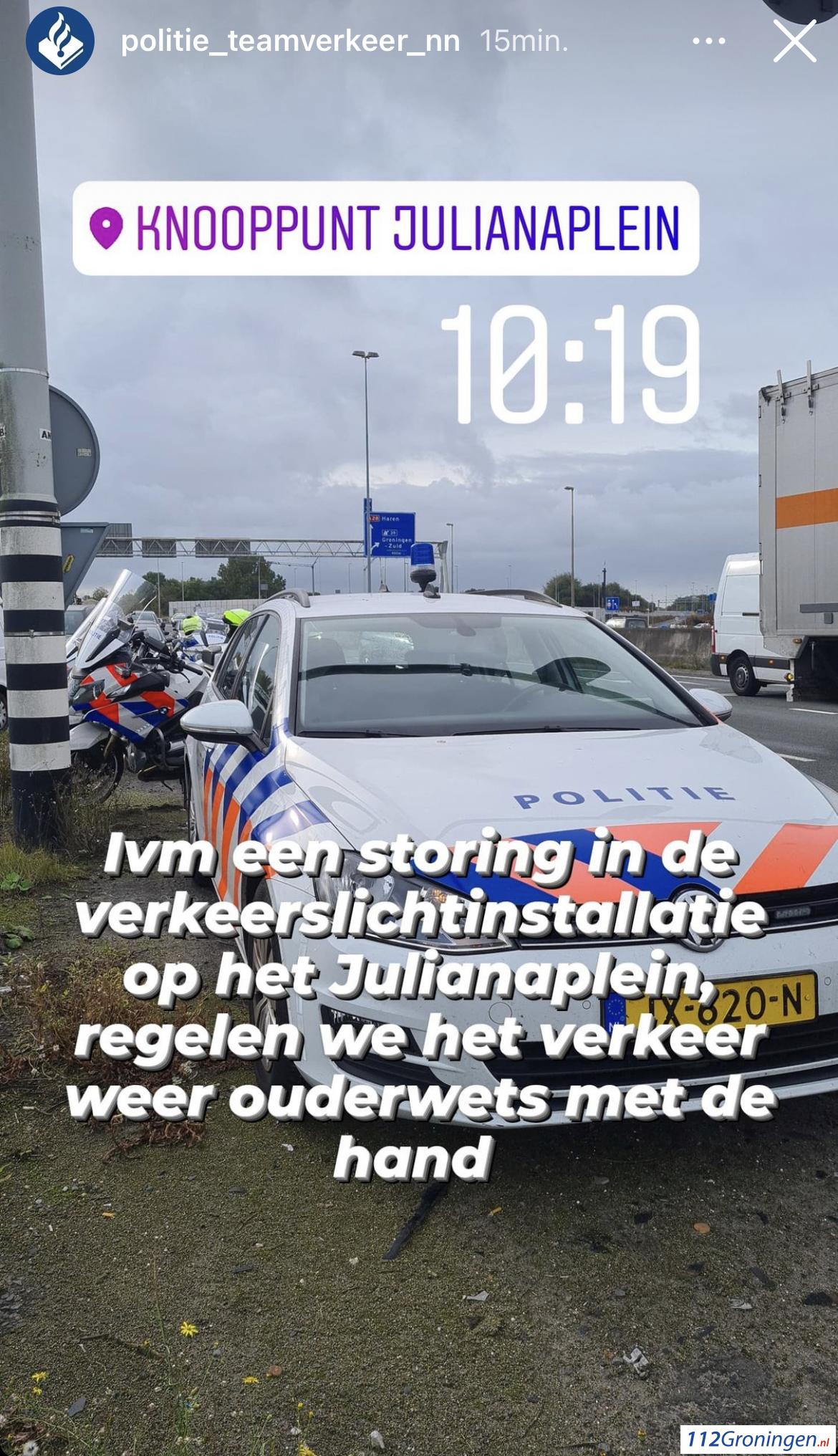 Groningen – De verkeersinstallatie die de verkeerslichten bestuurt op het Julianaplein zijn defect, dat meldt de Politie op haar Instagram account. Ze staan momenteel in storing.