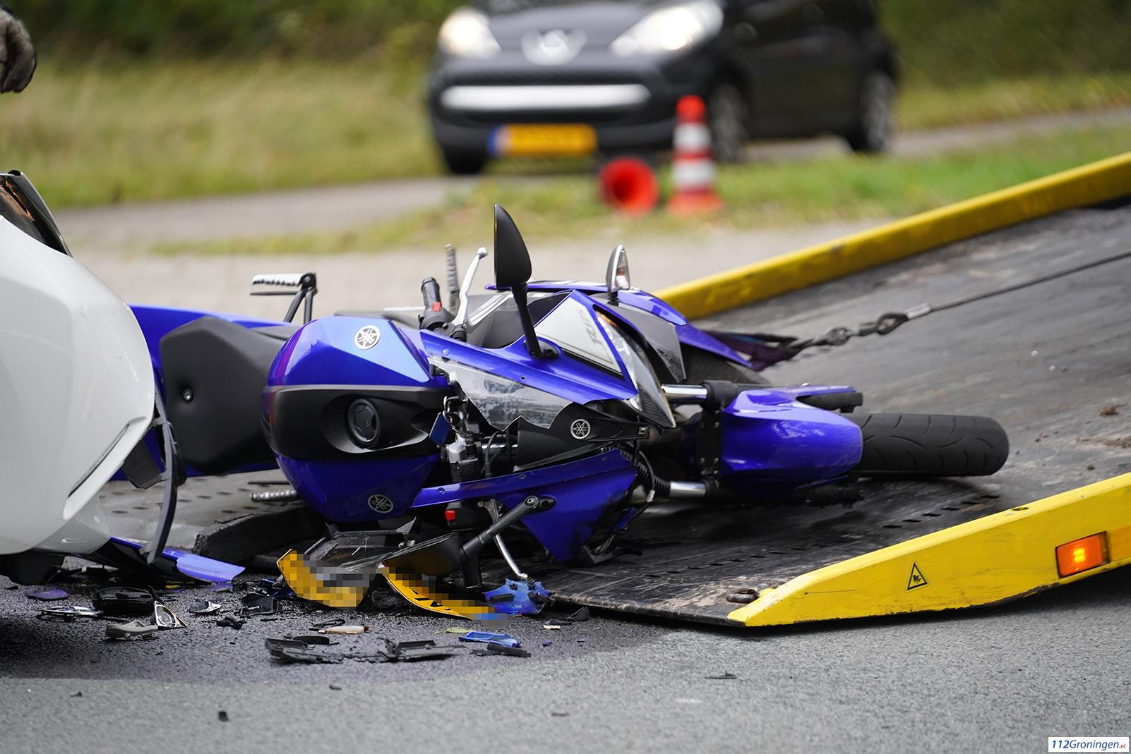 Motor raakt zwaar beschadigd bij ongeval met auto in Eelde (Video)