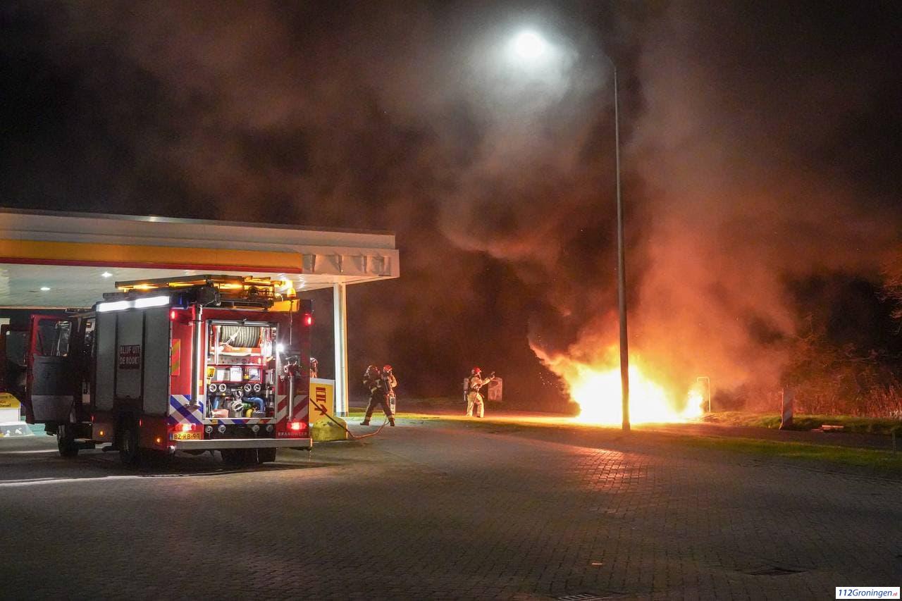 De automobilist was vermoedelijk aan het rijden toen er opeens rook onder de motorkap vandaan kwam. Bij aankomst van de hulpdiensten stond de auto volledig in de brand,. De brandweer van Haren kwam ter plaatse om het vuur te blussen met o.a. schuim, de auto is total loss. Bij het pompstation kon tijdelijk niet worden getankt doordat de beveiliging in werking was getreden, dan wordt de brandstof toevoer afgesloten. Een berger zal de auto wegslepen.