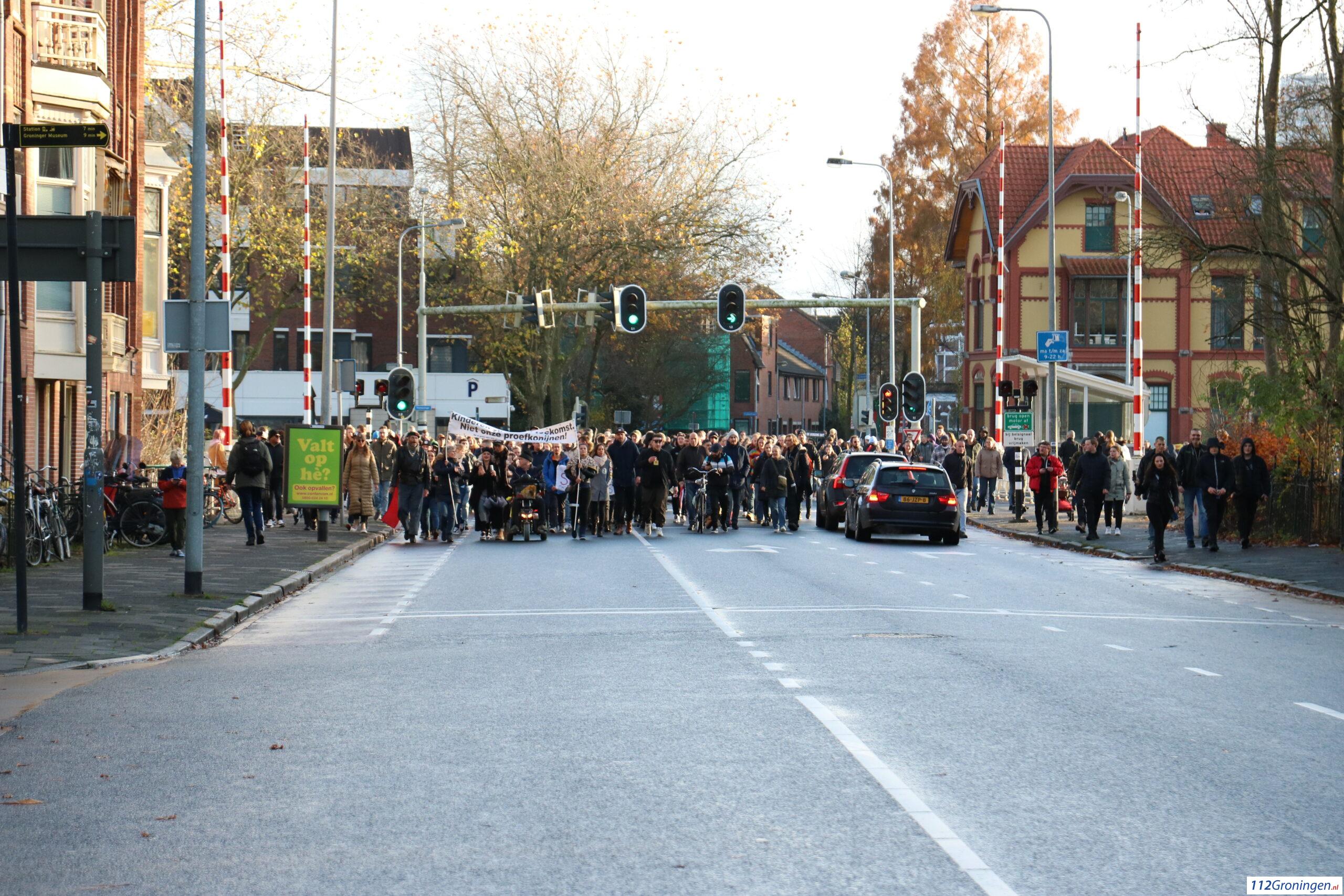 Rond 13.00 uur verzamelden de demonstranten zich op de Grote Markt. Daarna liep men via de Vismarkt, Gedempte Zuiderdiep, Stationsweg via de Rademarkt terug naar de Grote Markt. Volgens fotografen ter plaatse ging het om ongeveer twee- tot driehonderd mensen. Verschillende demonstranten hadden borden en spandoeken bij zich waarop stond te lezen ‘QR en 2G? Nee!’ en ‘Kinderen zijn onze toekomst, niet onze proefkonijnen.’ Ook werden er leuzen gescandeerd als ‘2G weg er mee’.