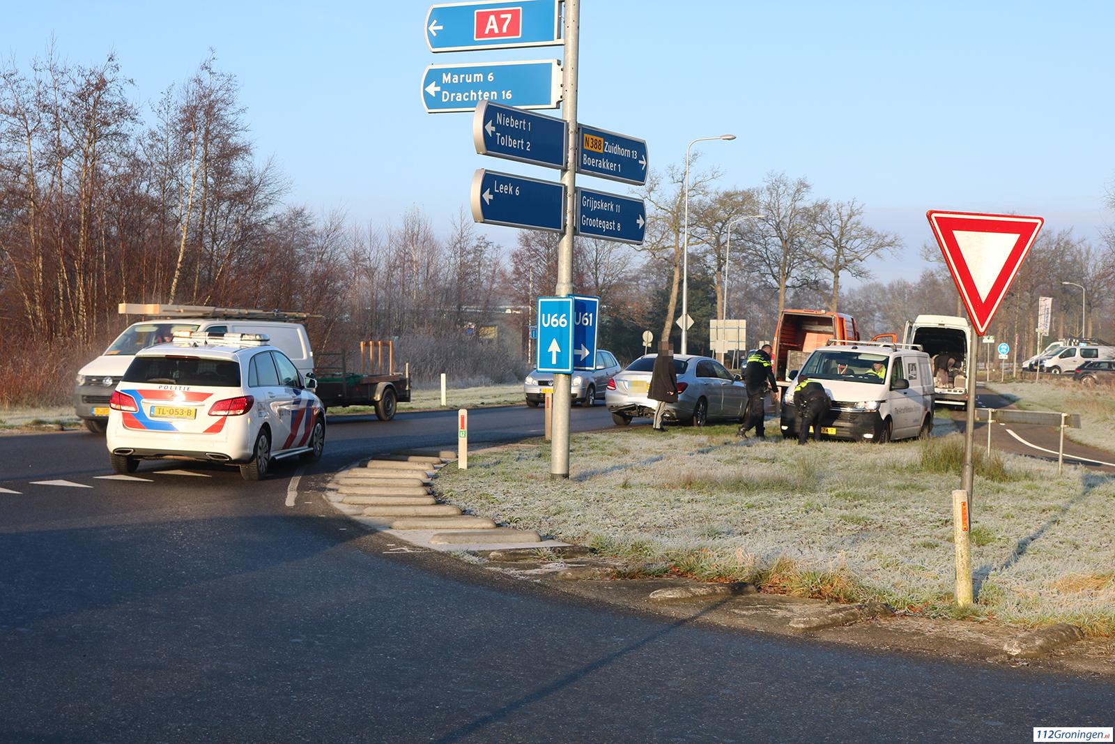 Boerakker – Op de N388/ Boerakkerweg zijn zaterdagmorgen om 10:20 uur twee voertuigen tegen elkaar aan gebotst. Bij de zogenaamde kop- staart aanrijding raakte niemand gewond. De toedracht van het ongeval is niet bekend. De politie noteerde gegevens van de betrokkenen. 1 voertuig werd afgesleept.