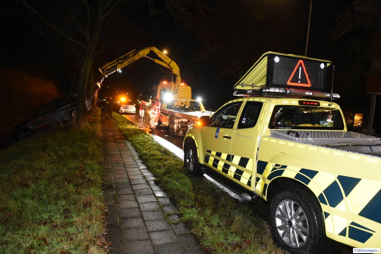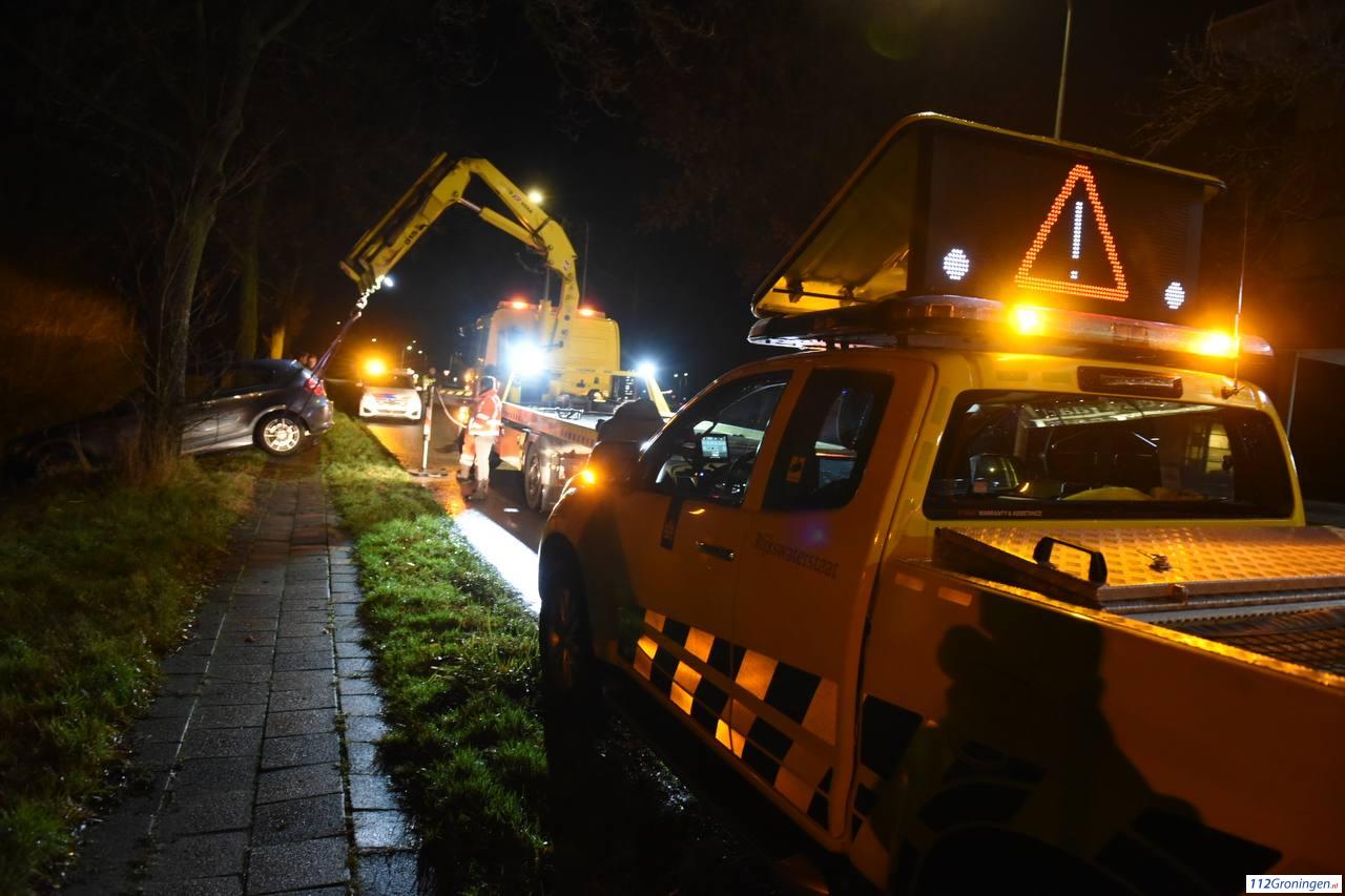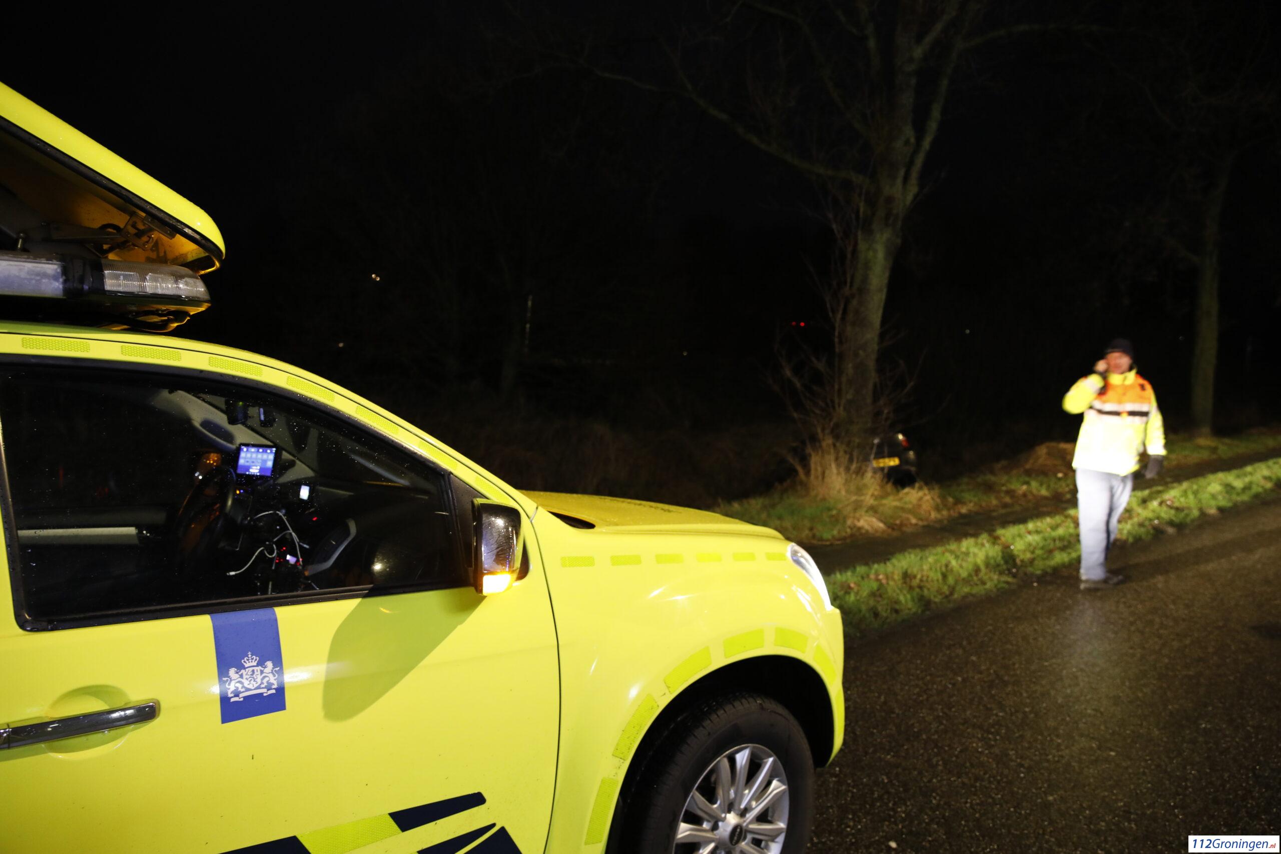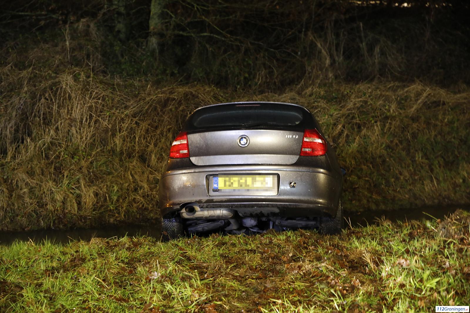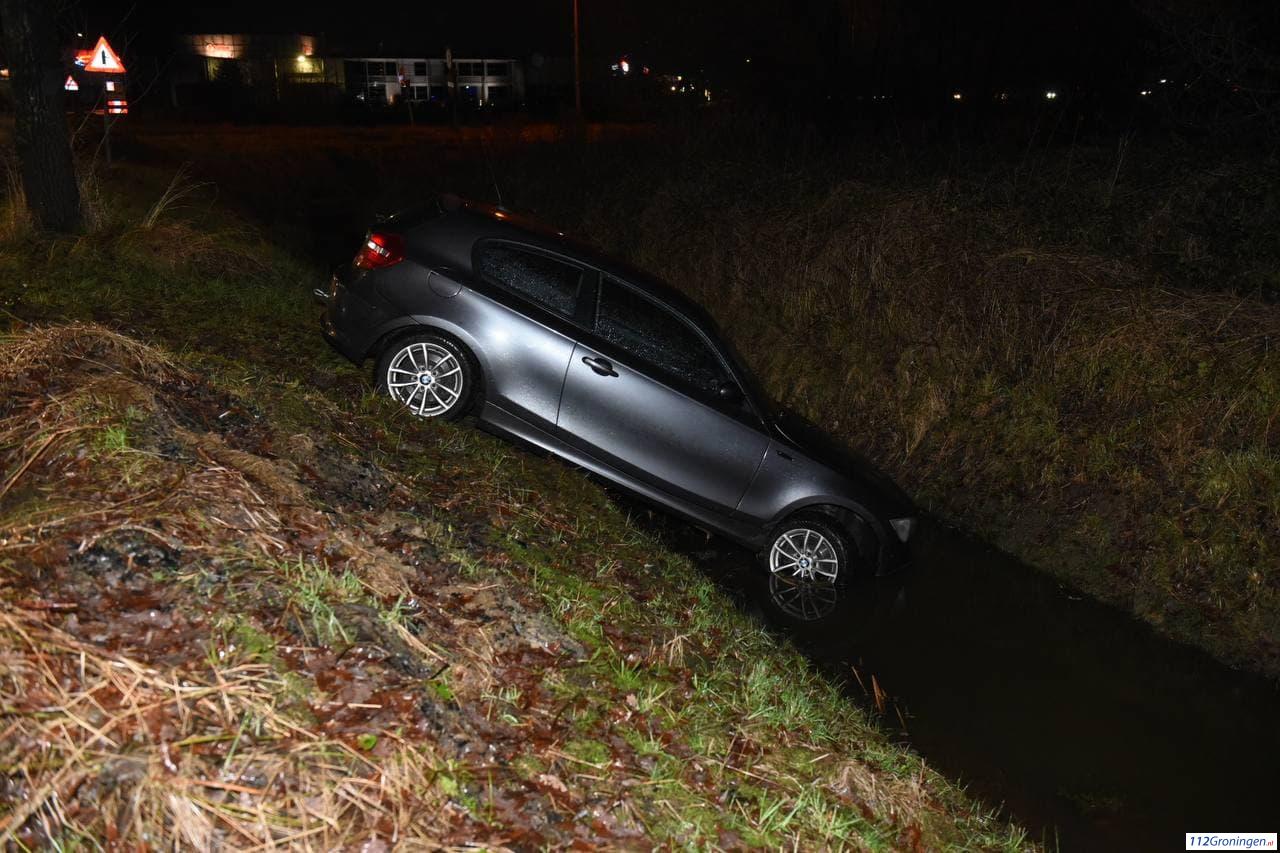 Auto raakt in sloot op de Kapteynlaan in Leek