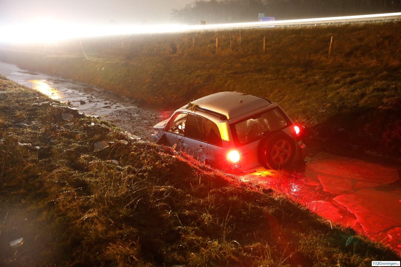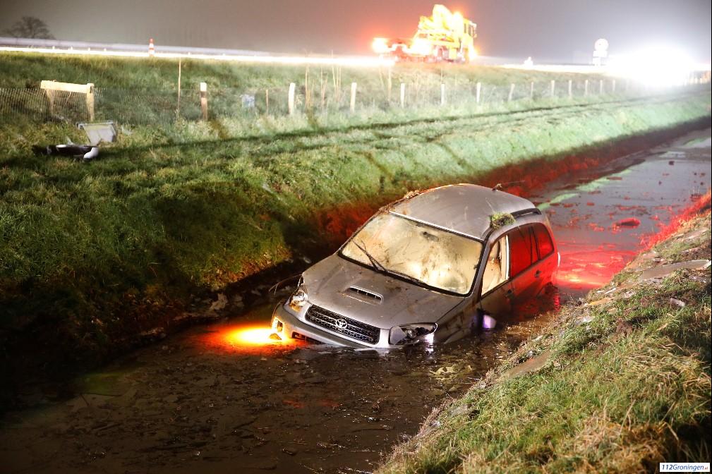 Marum – Maandagochtend belandde een auto in de sloot naast de A7, dit gebeurde ter hoogte van Marum.
