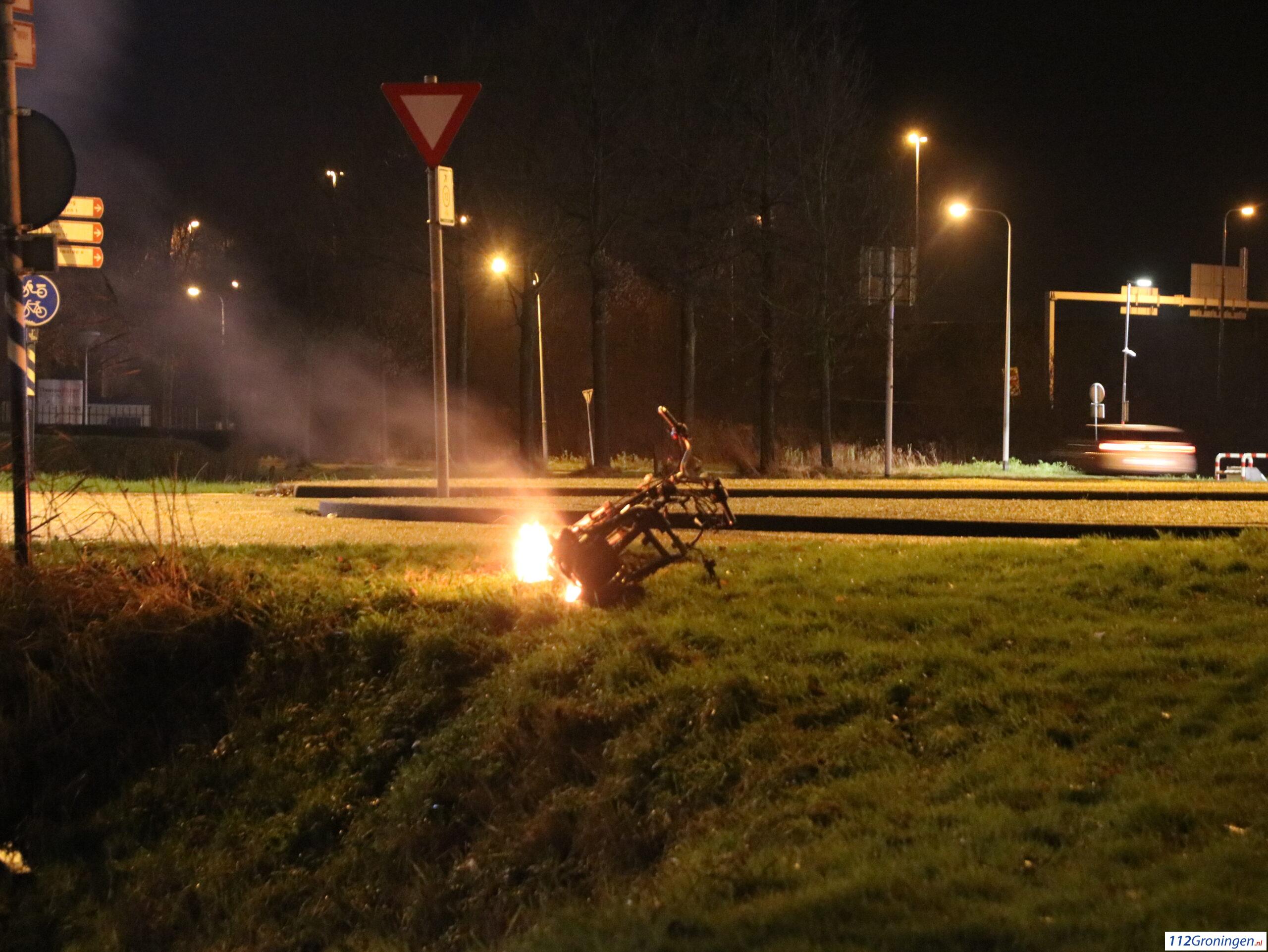 Hoogkerk – Op de rotonde Zuiderweg / Johan van Zweedenlaan hebben onbekenden een scooter in brand gestoken. De brandweer had de kleine brand snel geblust en de scooter werd opgehaald door de Gemeente Groningen. Er werd niemand aangehouden. Rond 21:00 uur verloopt de situatie in heel Groningen nog rustig. Er zijn sinds de avond wel veel kleine buitenbrandjes in de hele provincie, maar er zijn geen grote calamiteiten tot 19:30 uur gemeld. In Vinkhuizen is wel een grimmige sfeer melden getuigen. Op meerdere plekken in Groningen werden agenten en brandweer bekogeld.