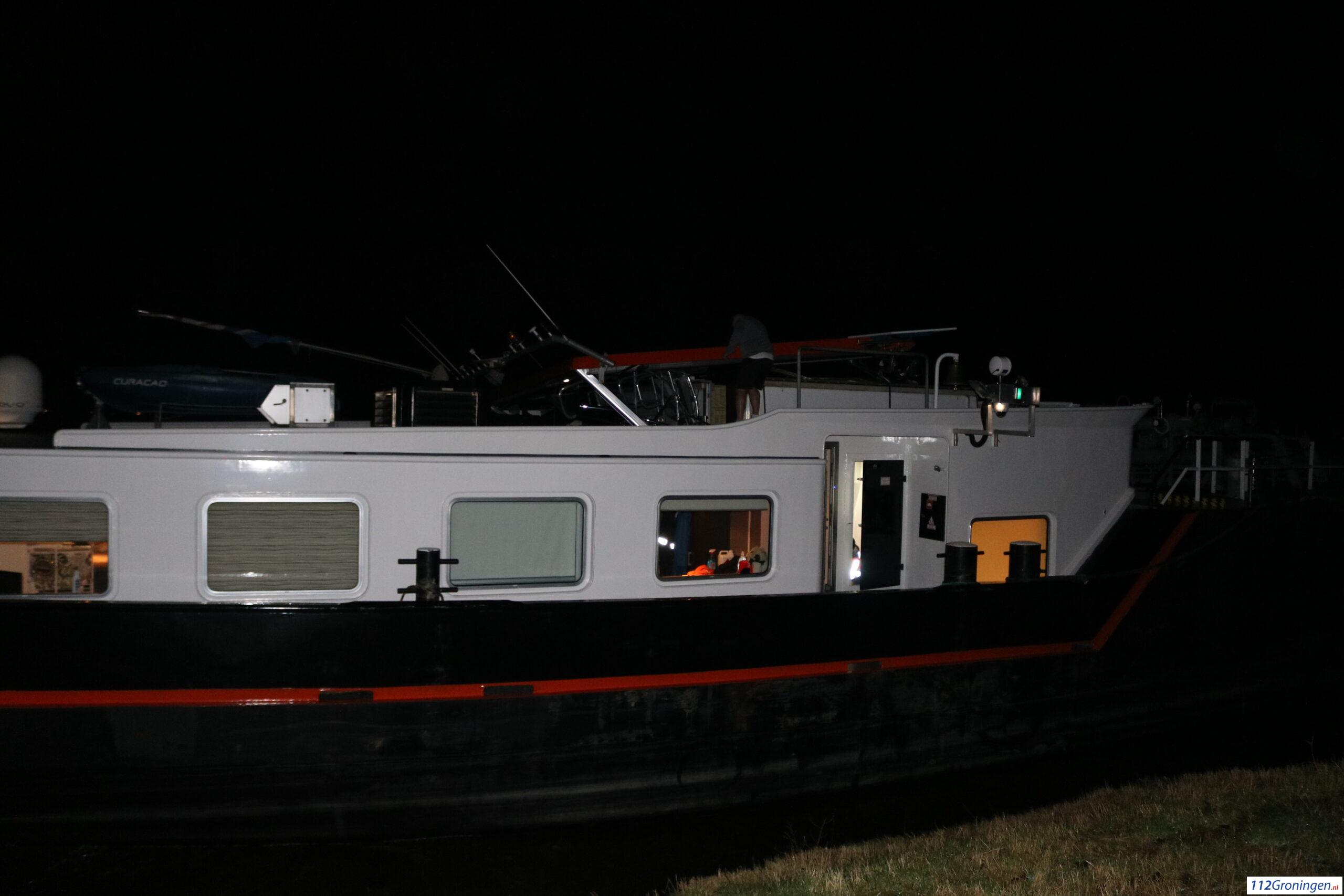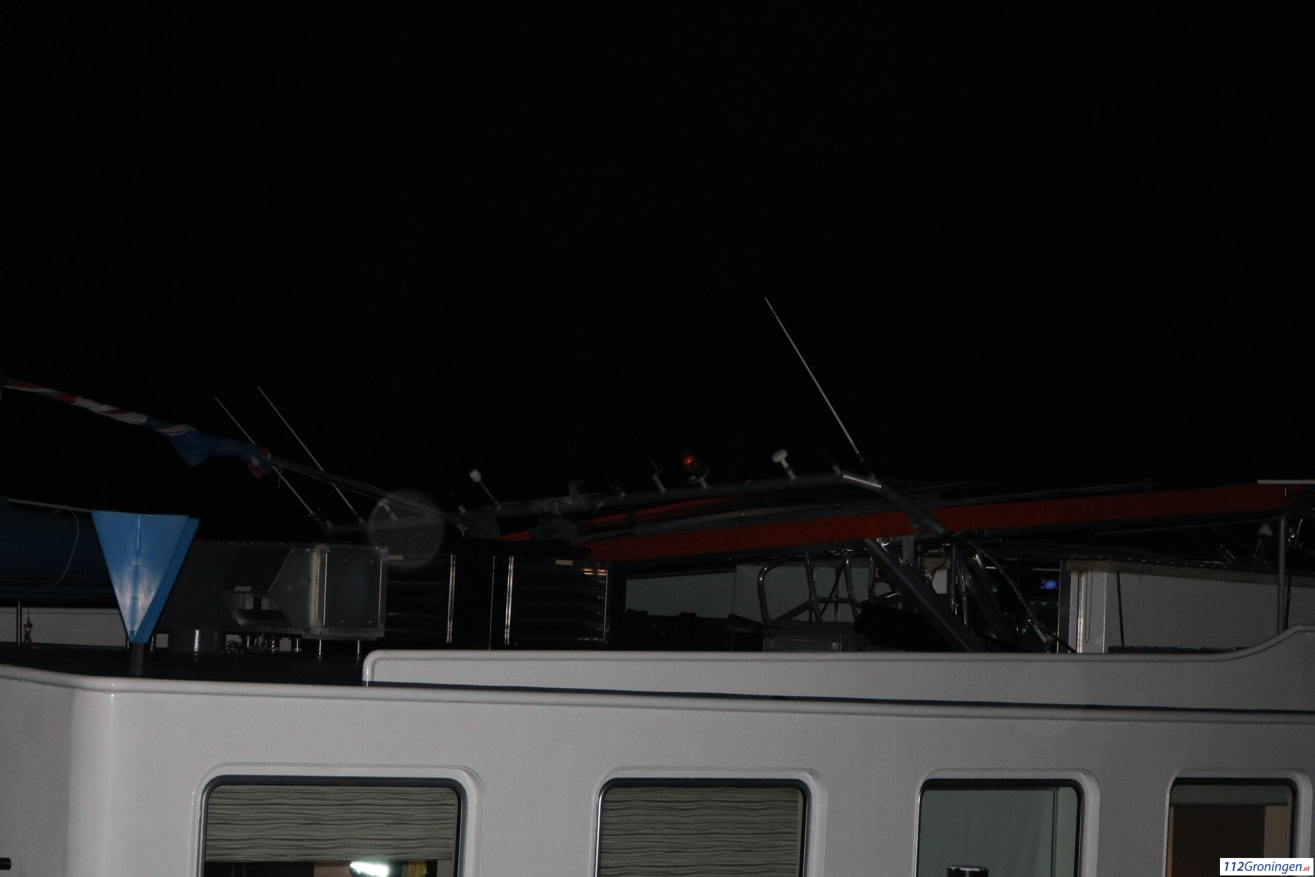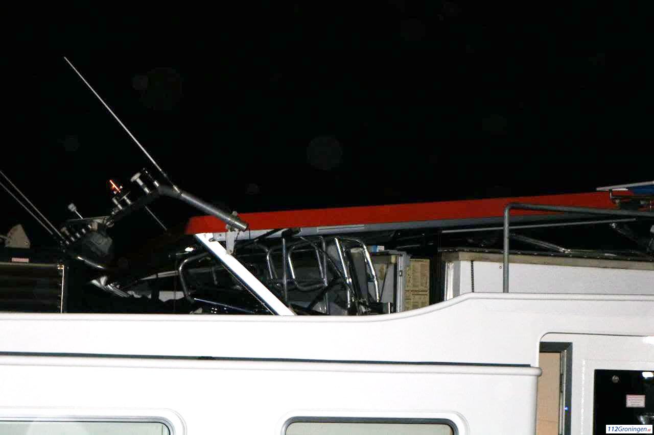 De aanvaring vond plaats rond 19.30 uur. “Het schip was onderweg van Groningen richting Gaarkeuken”, vertelt woordvoerder Baudina Schaafsma. “Door nog onbekende oorzaak heeft de stuurhut van de boot de brug geraakt. De stuurhut zit nog wel op het schip.” Volgens fotografen ter plaatse was er flink wat schade aan de stuurhut. Het is onbekend of er mensen gewond zijn geraakt.