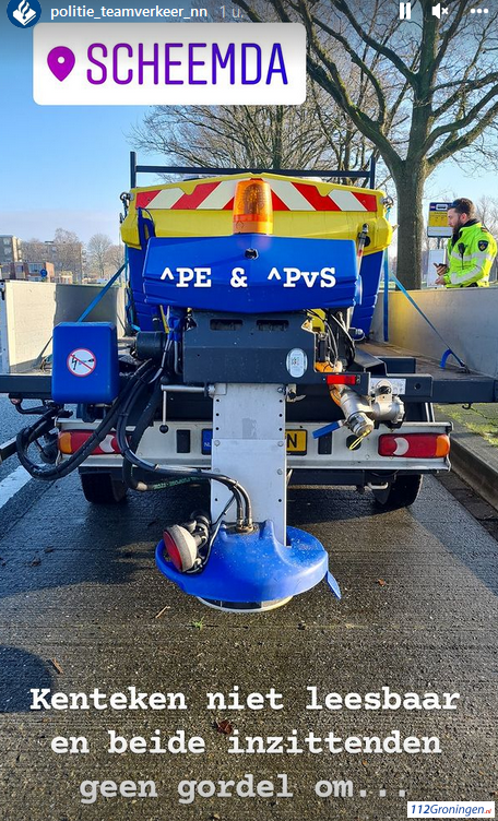Scheemda – Maandagmiddag ook een verkeer controle bij Scheemda. De bestuurder en bijrijder van een strooiwagen droegen beide geen gordels, ook was de kentekenplaat niet leesbaar.