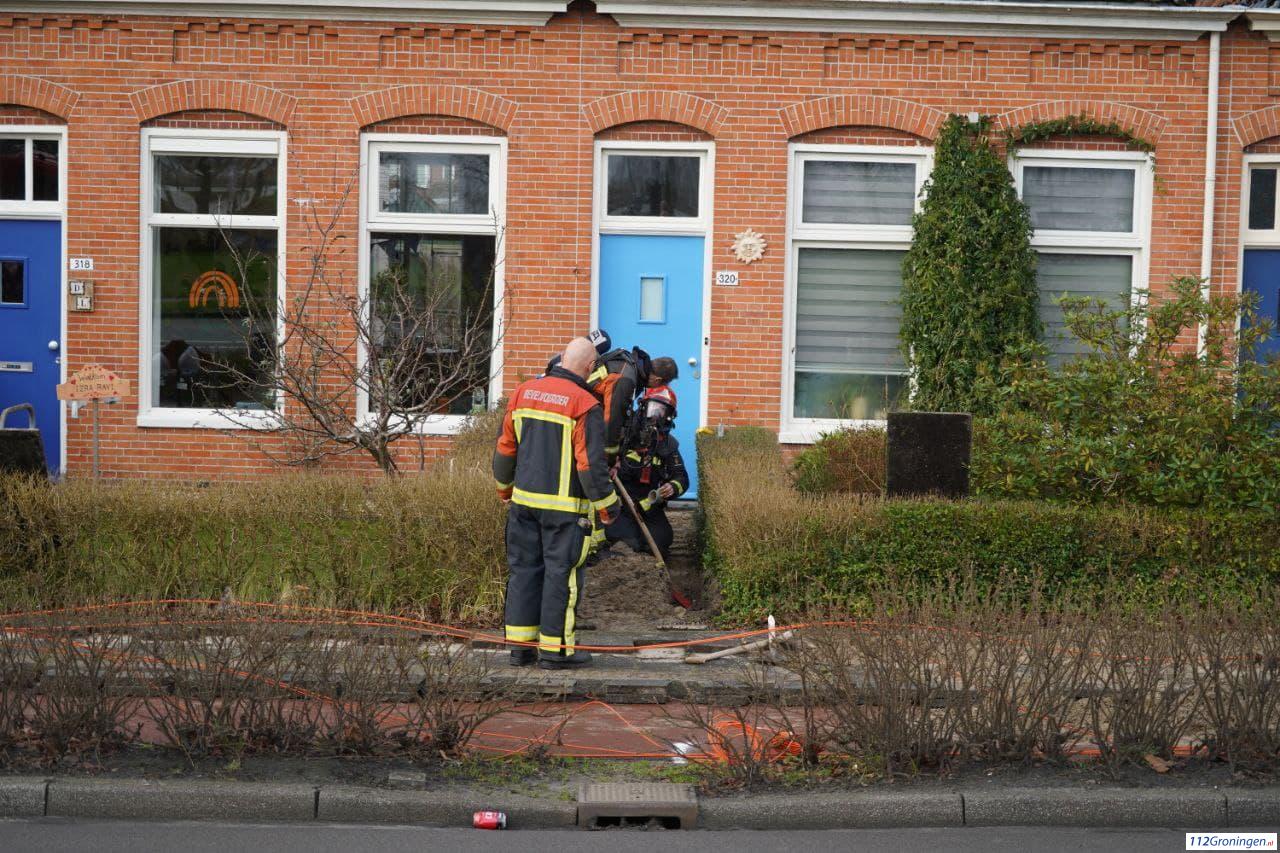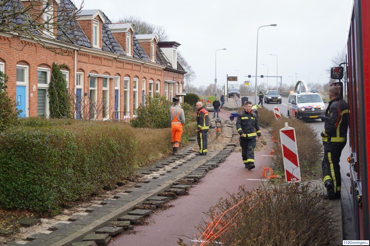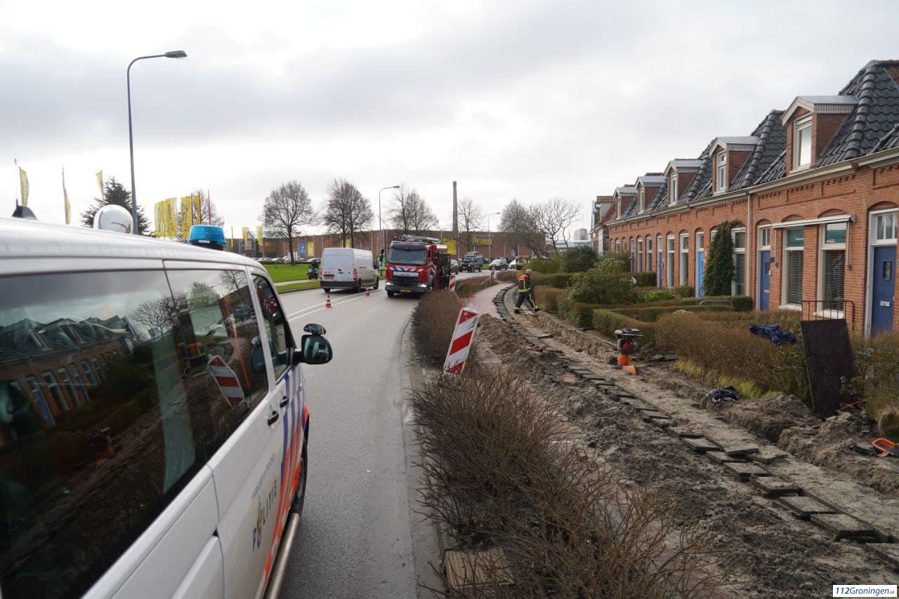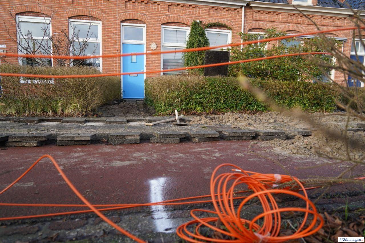 Groningen – Bij graafwerkzaamheden voor de aanleg van glasvezelkabels is maandagochtend om 11:25 uur een gasleiding geraakt in een voortuin aan het Damsterdiep.