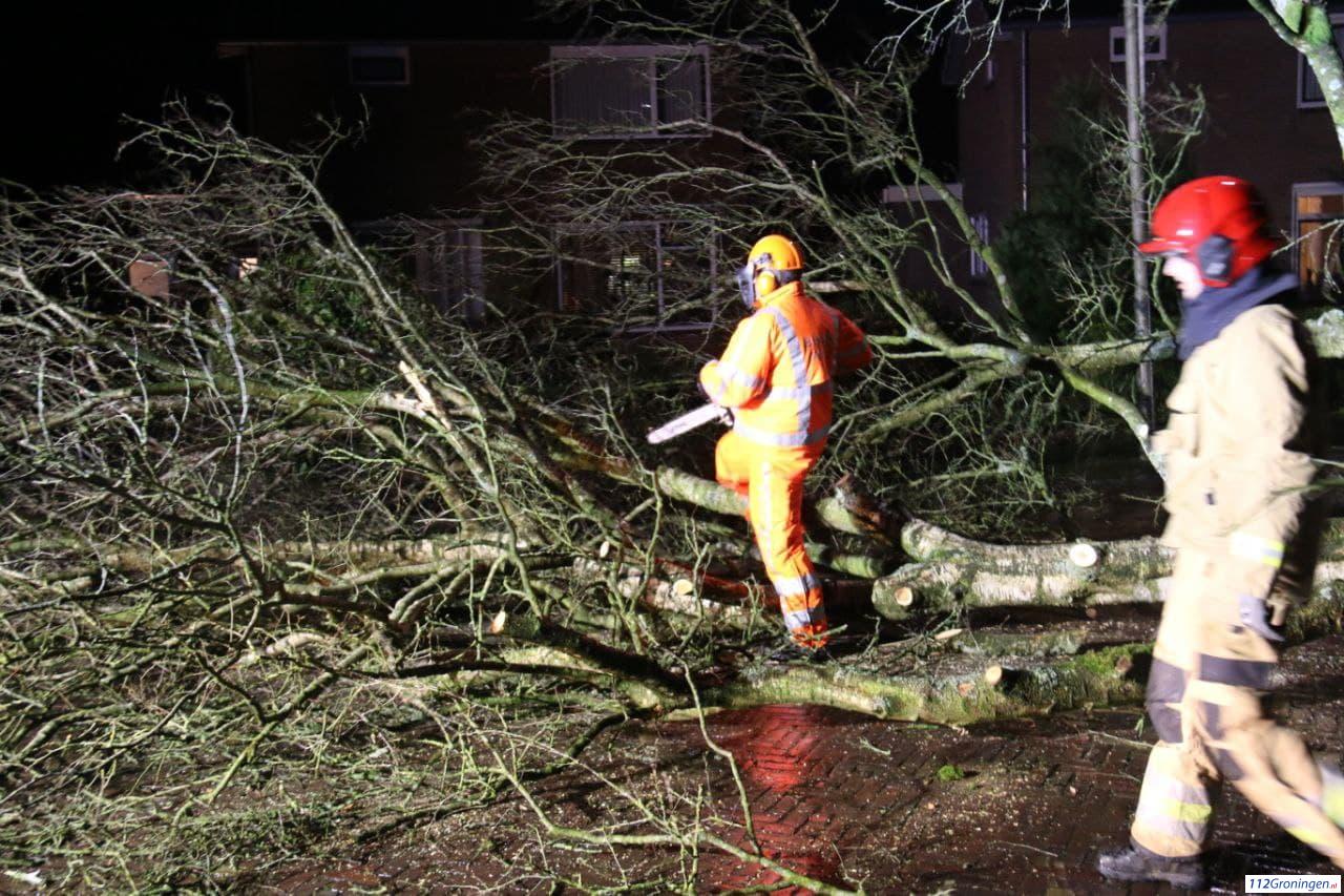 Bomen vielen massaal om en er waren schades aan gebouwen en daken. Ook was er een schoorsteenbrand in Stadskanaal. En delen dak van oude zusterflat Winschoten dreigden eraf te waaien.