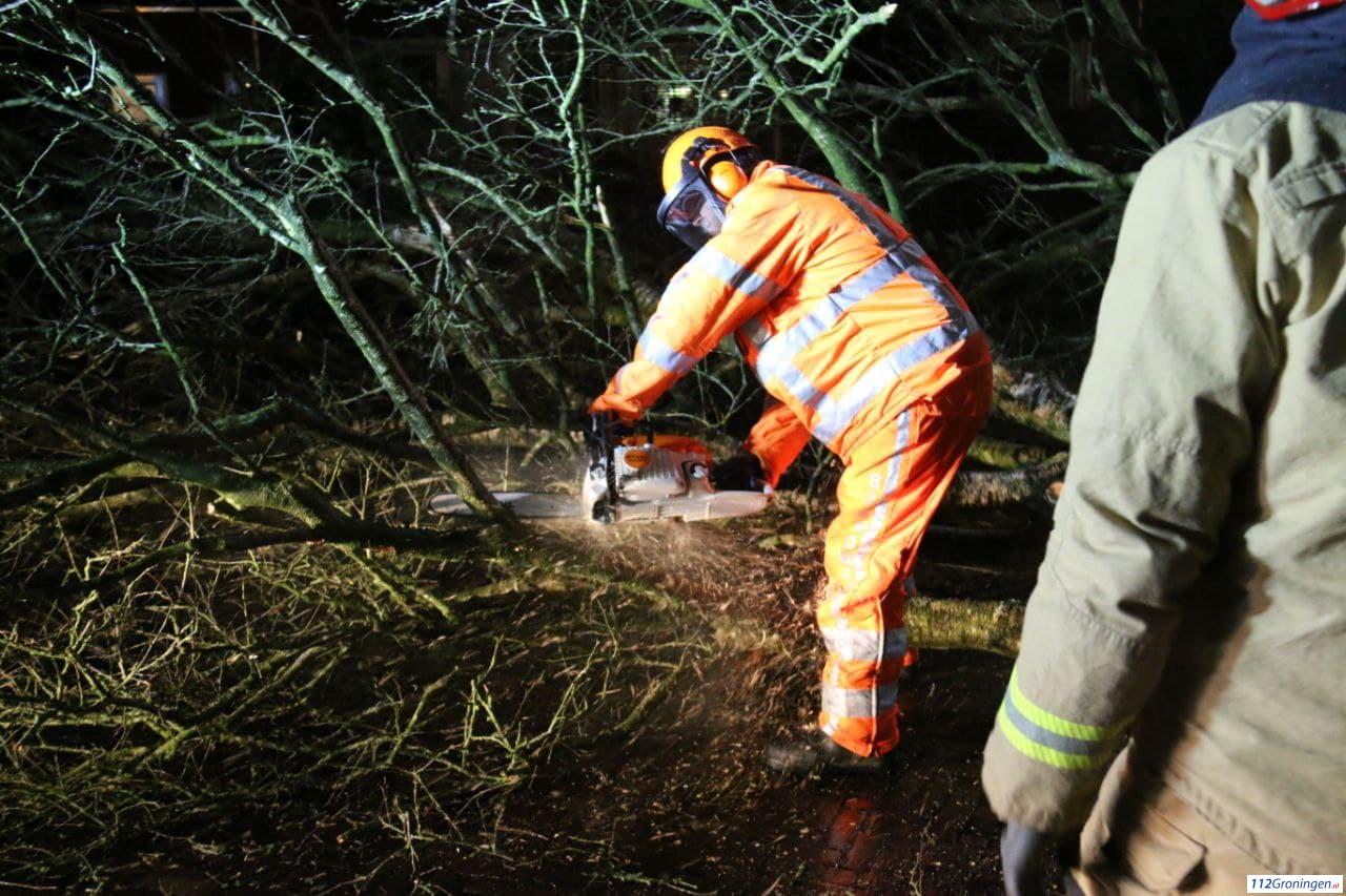 Bij het Egypteneinde in Veendam een boom over de weg, bij aankomst ontdekten ze dat de schoorsteenpijp van de naastgelegen woning gloeide. Brandweer deed daar eerst een controle.