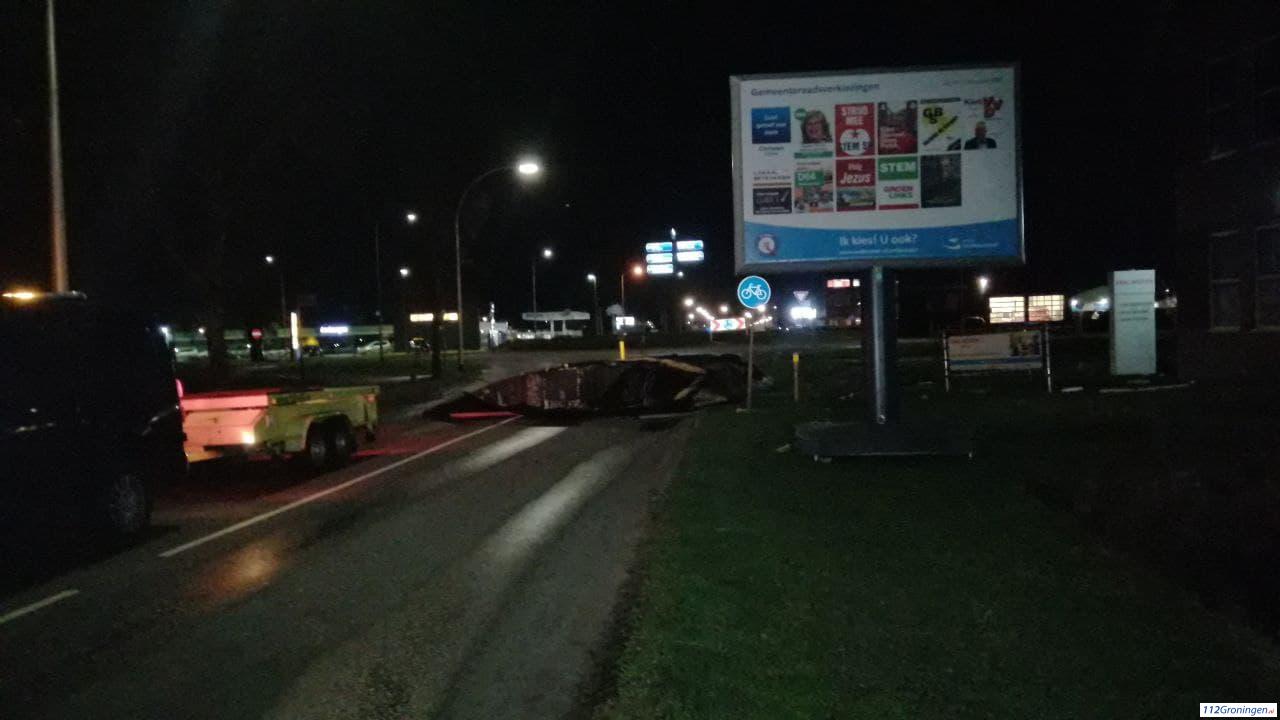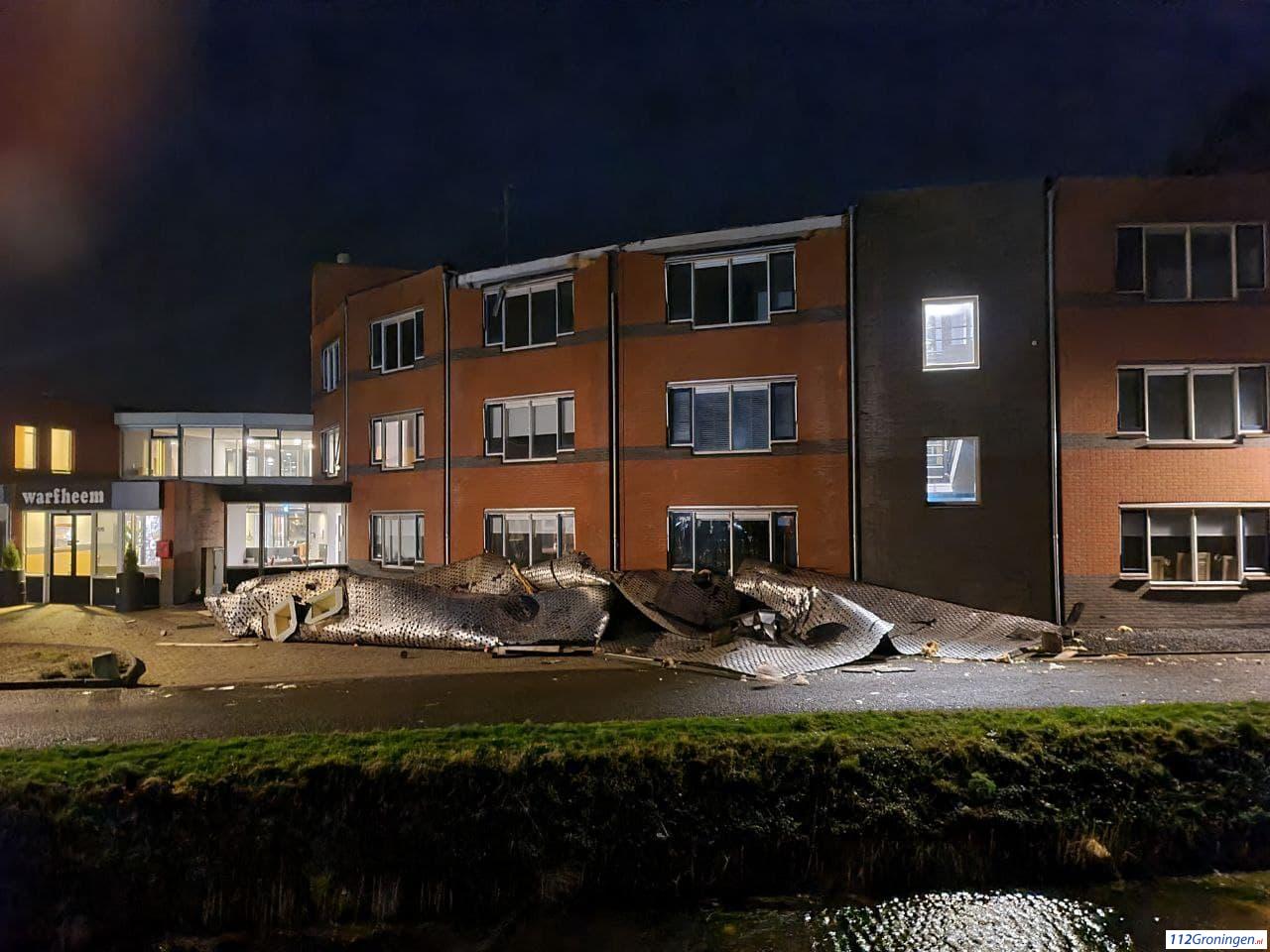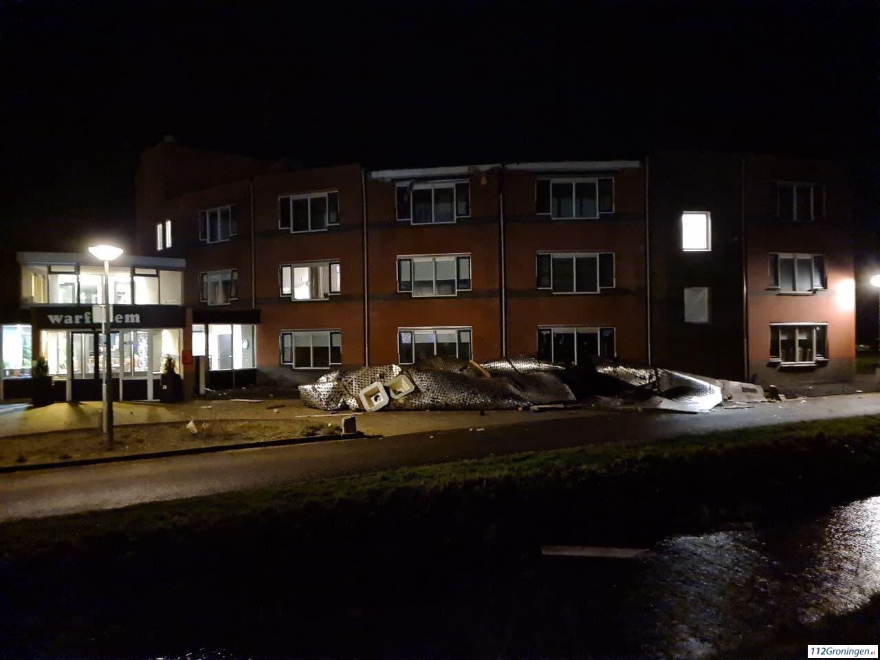 Ter Apel/ Stadskanaal/ Warffum – Diverse daken zijn van panden en woningen gewaaid, waaronder Smeltenspad in Warffum en bij de Koningsdwarsstraat in Ter Apel stortte een gevel in. Bij het pand van Kral Westen in Stadskanaal nabij de brandweerkazerne waaide een dak deels eraf. Ook bij het Hogeland college zat mogelijk wat los op het dak.