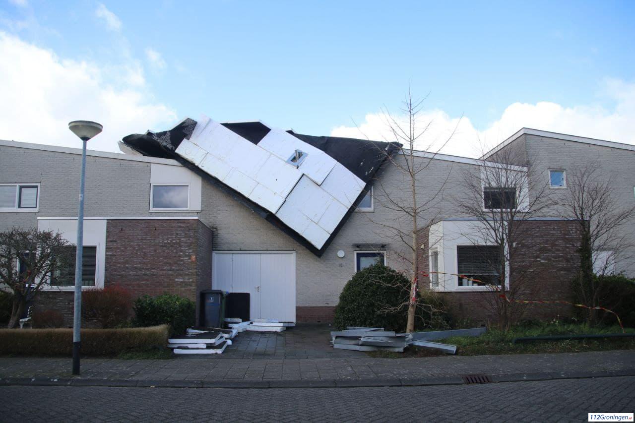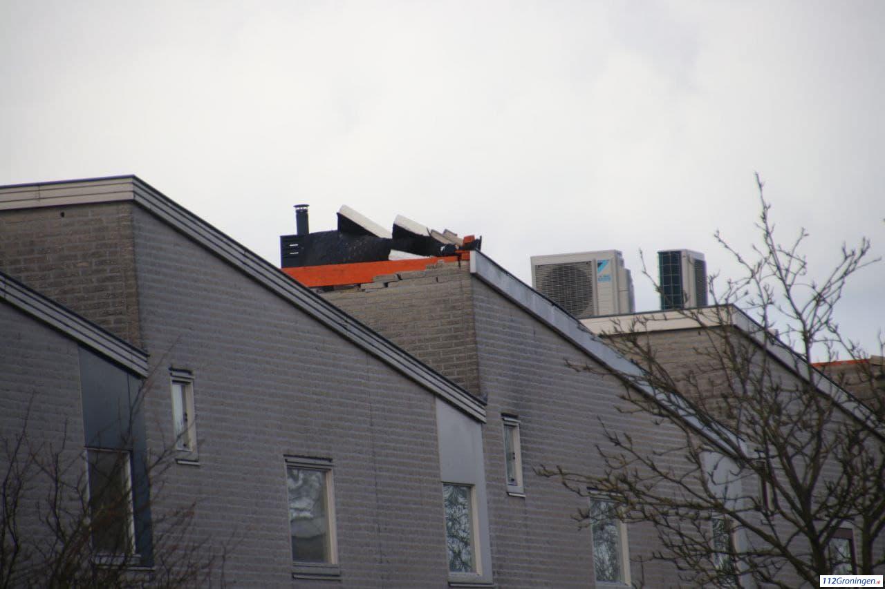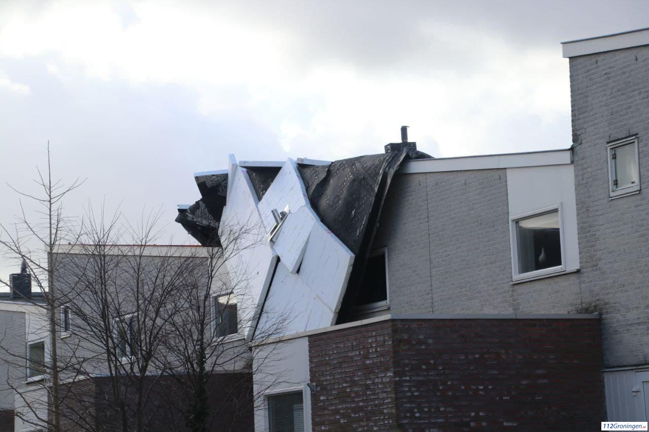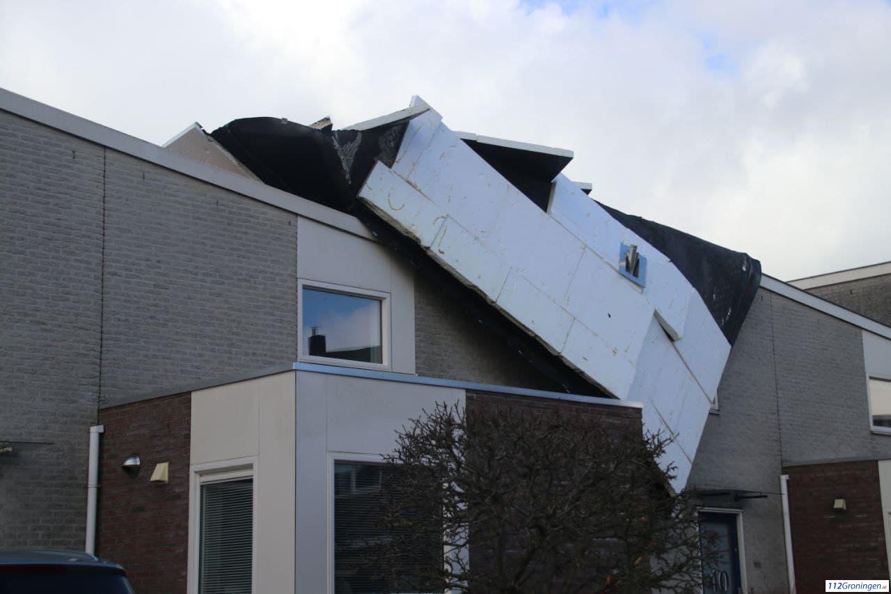 Groningen – Aan de Jacob Schorerstraat in Groningen zijn vrijdagnacht meerdere daken van woningen afgeblazen door de wind.