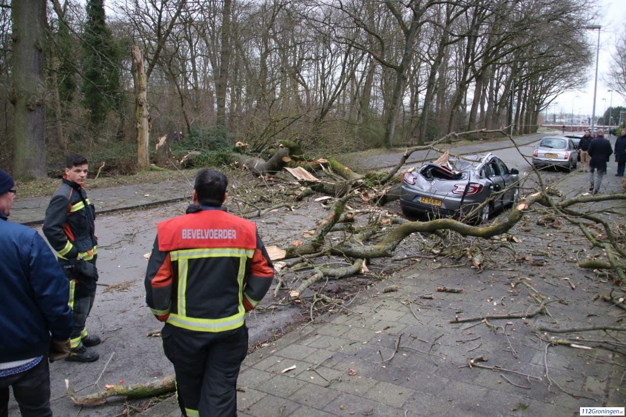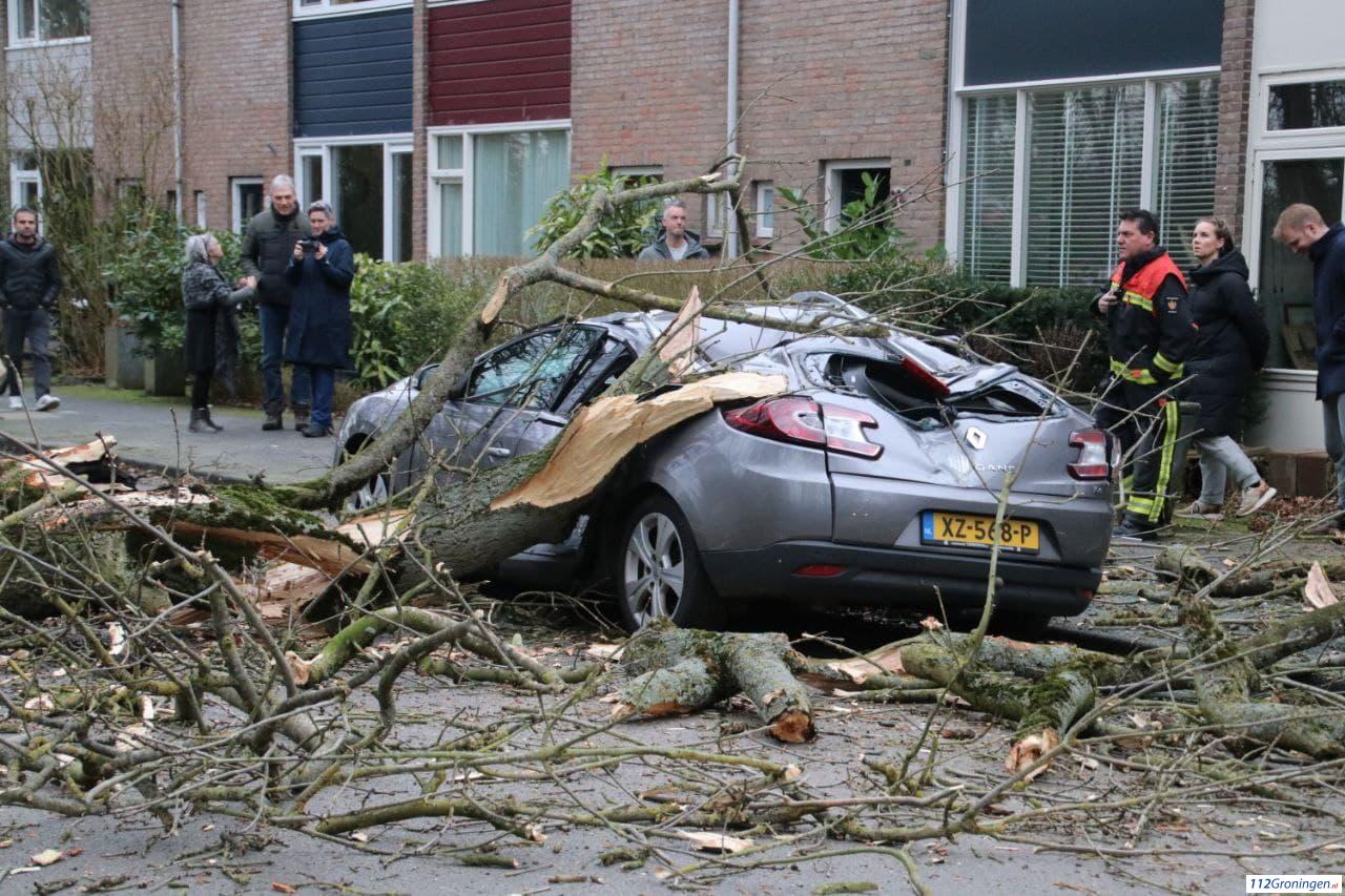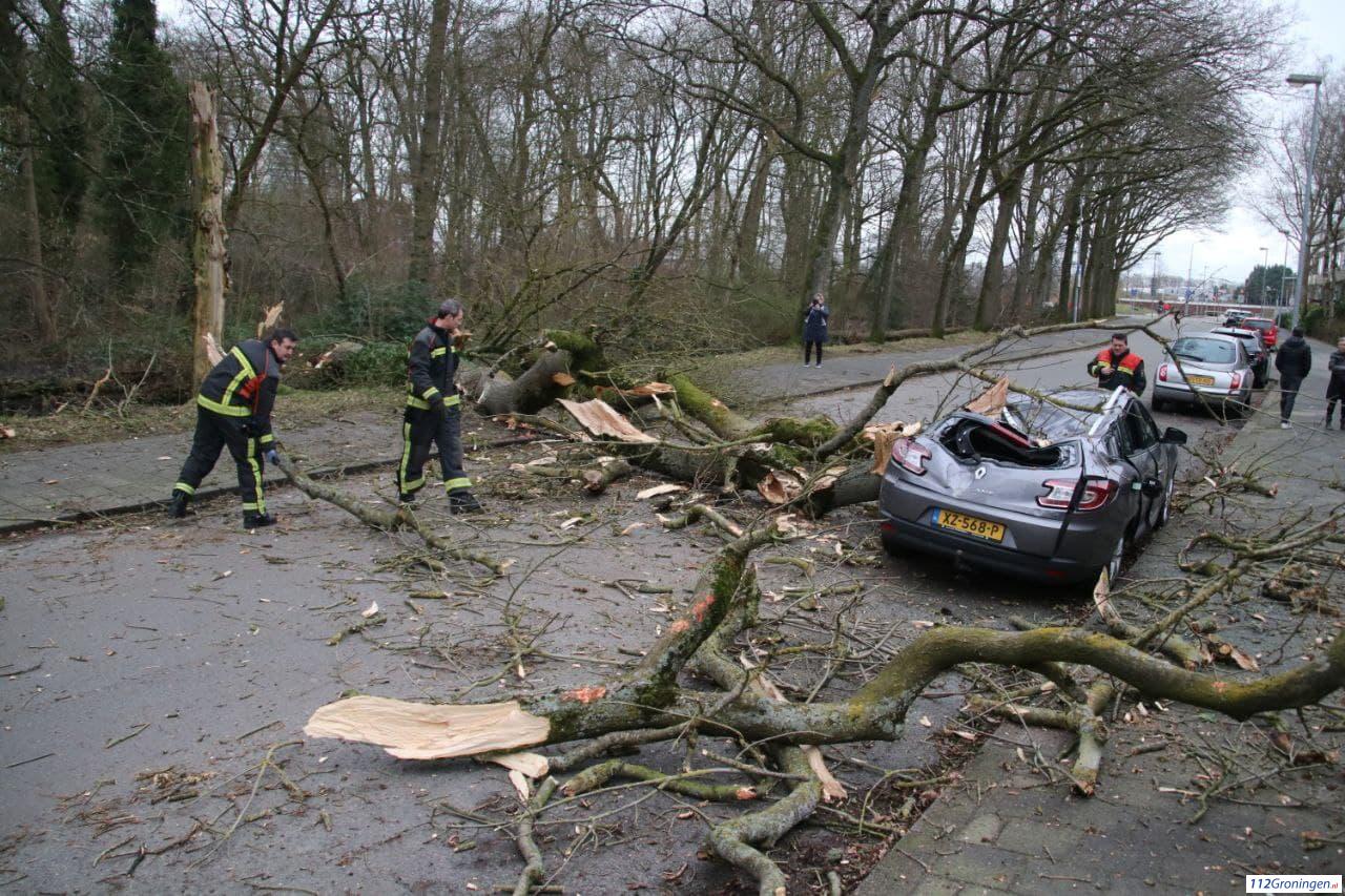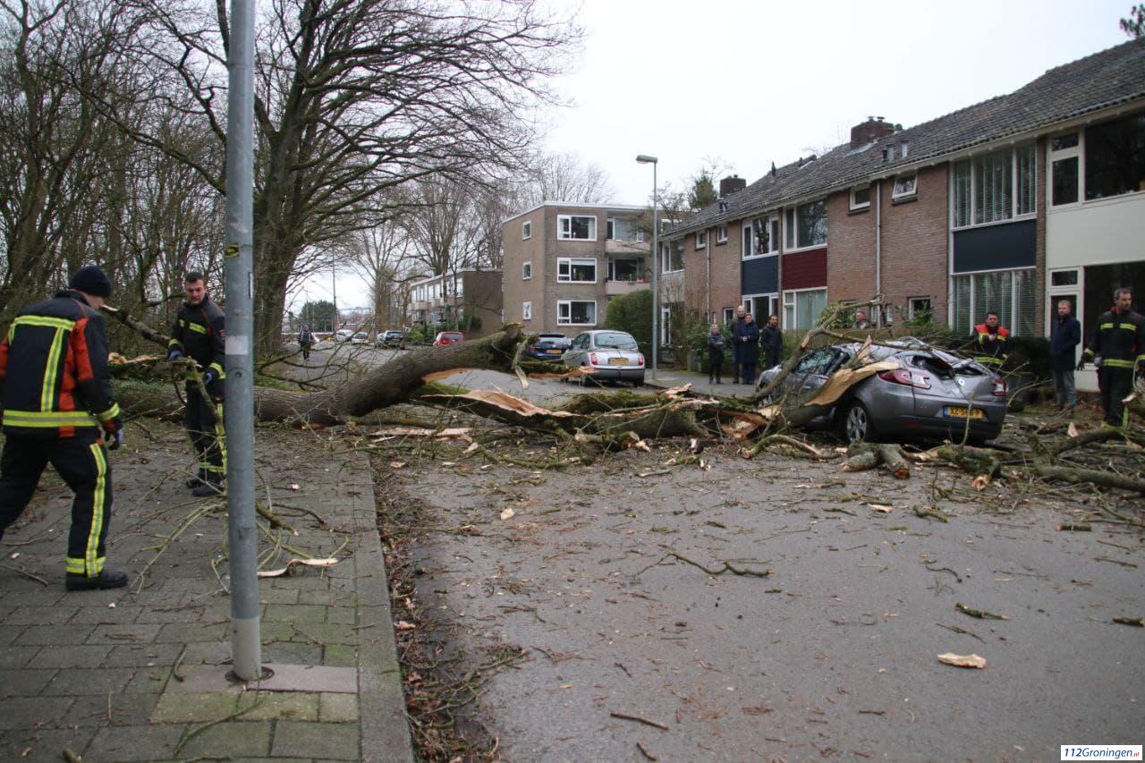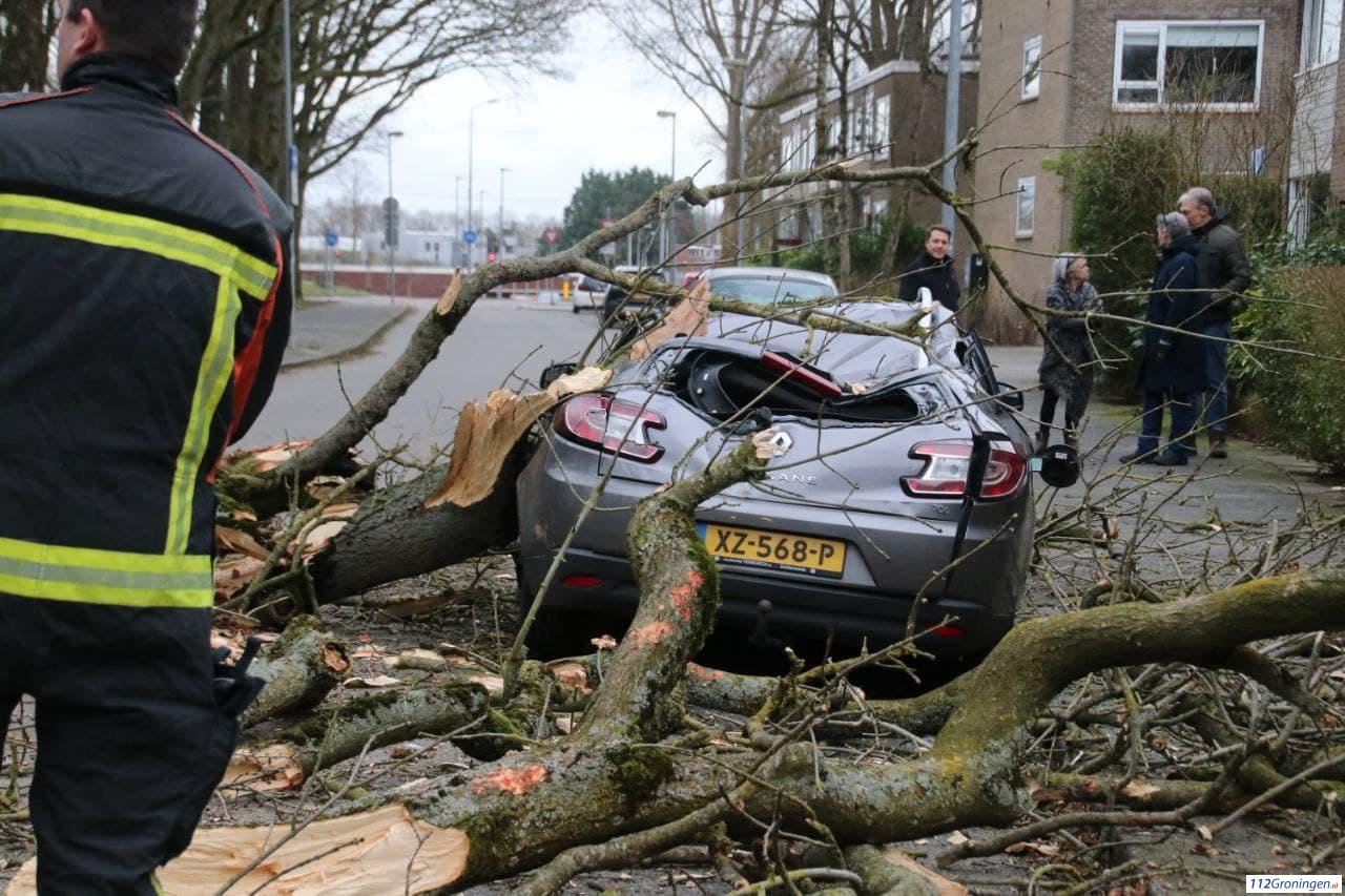 De brandweer werd omstreeks half vijf gealarmeerd voor de stormschade. Bij aankomst bleek een grote boom omgewaaid te zijn en bovenop een personenauto te zijn belandt. Gelukkig zat er niemand in het geparkeerde voertuig.