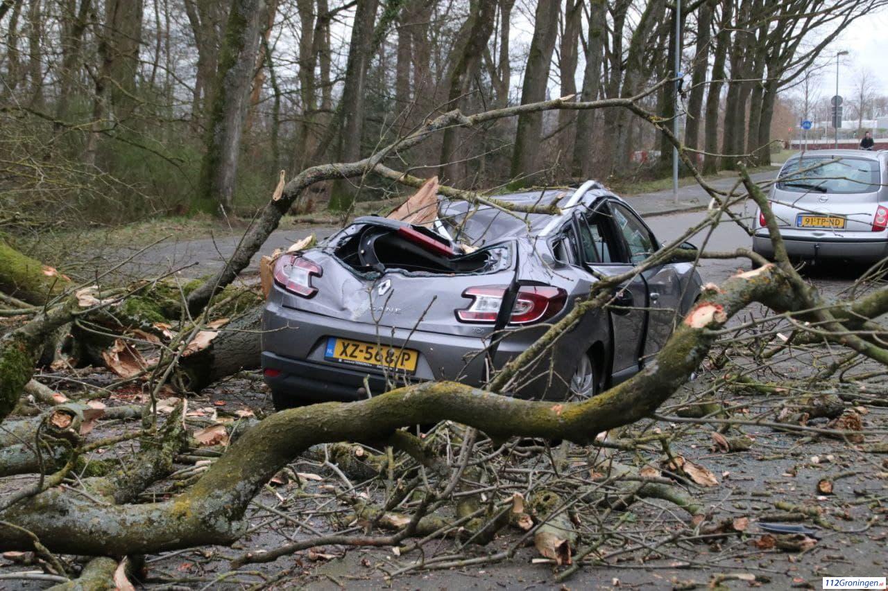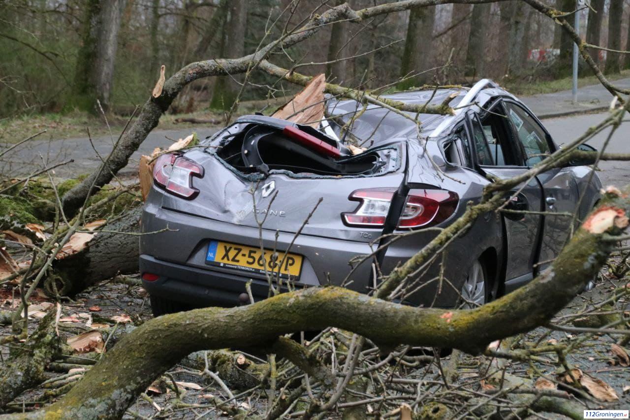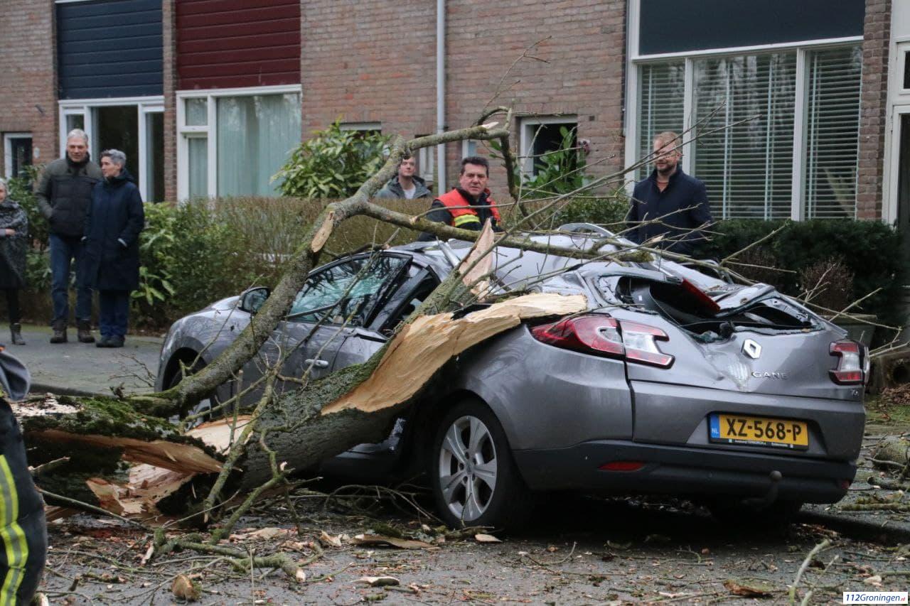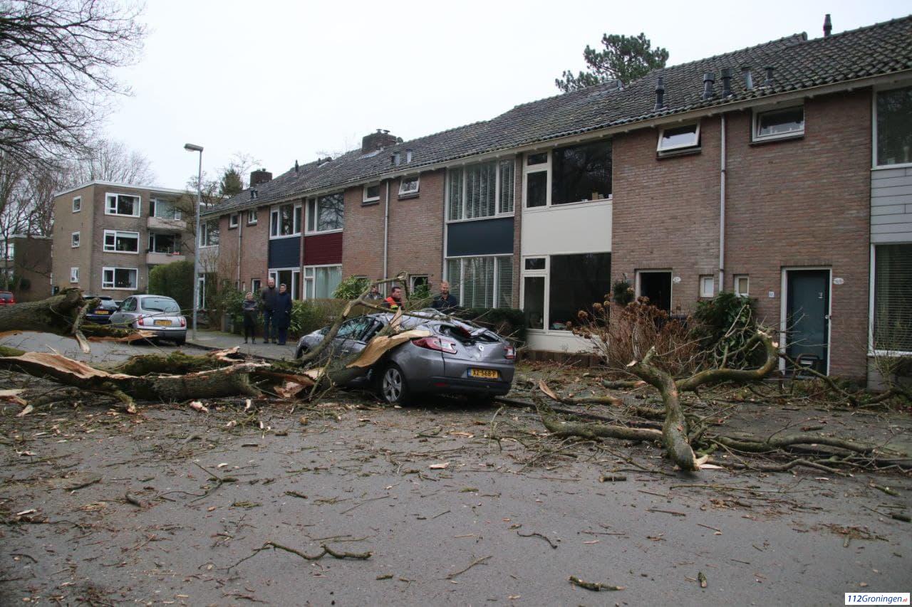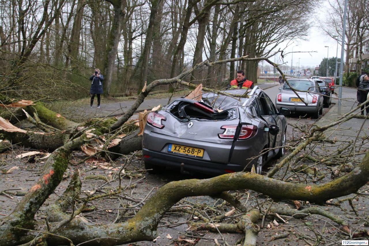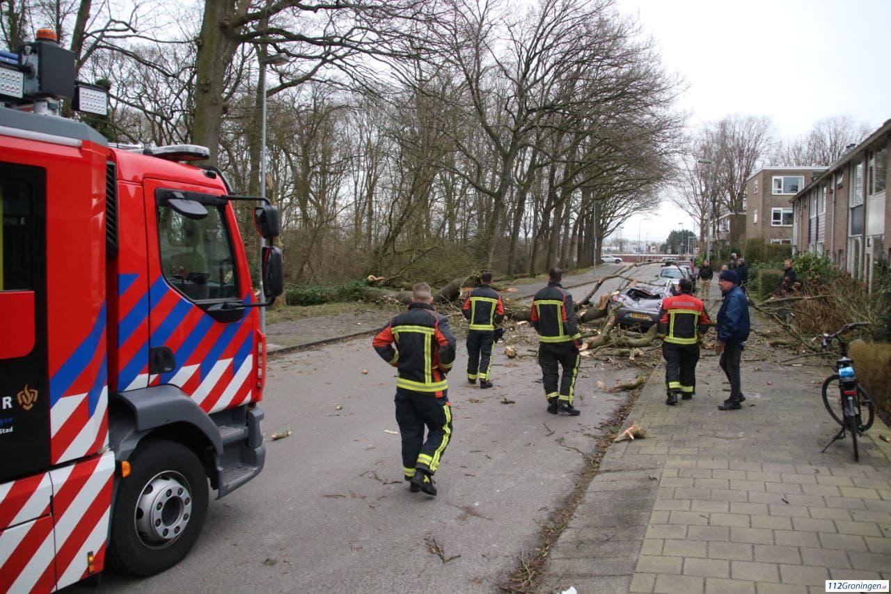 De brandweer werd omstreeks half vijf gealarmeerd voor de stormschade. Bij aankomst bleek een grote boom omgewaaid te zijn en bovenop een personenauto te zijn belandt. Gelukkig zat er niemand in het geparkeerde voertuig.