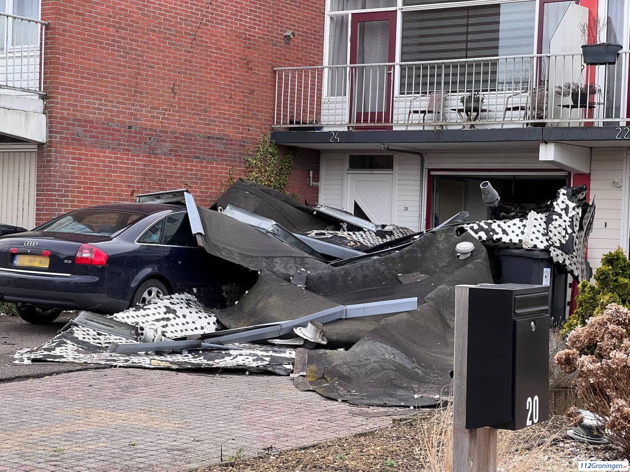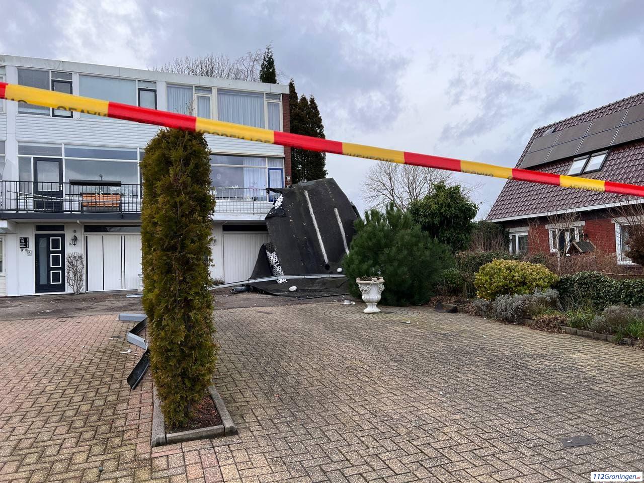 Aan de Opwierderweg in Appingedam zijn stukken dakleer naar beneden gekomen. Daardoor zijn 18 woningen ontruimd door de Brandweer.