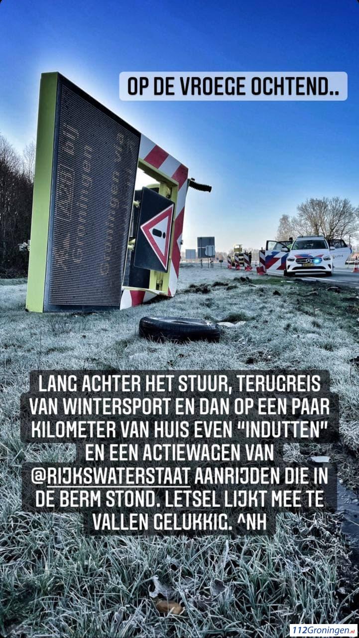 Gieten – Bij een verkeersongeluk op de N34 bij Gieten is zaterdagochtend een personenauto van een gezin uit Eelderwolde op een actiewagen van Rijkswaterstaat gebotst. Dat meldt de politie op sociale media.