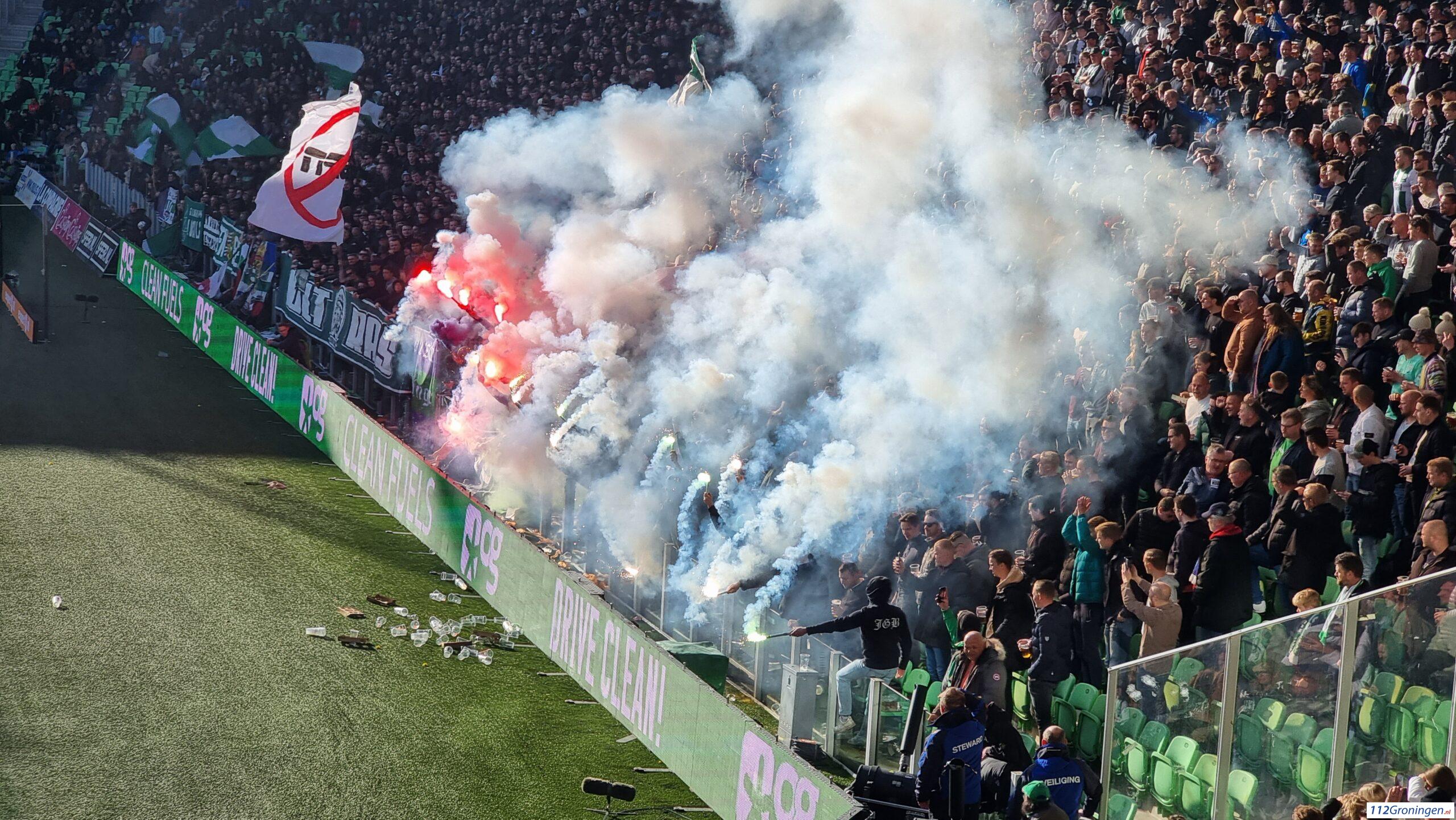 Stadionverbod voor vijf mensen vanwege vuurwerk op veld Euroborg