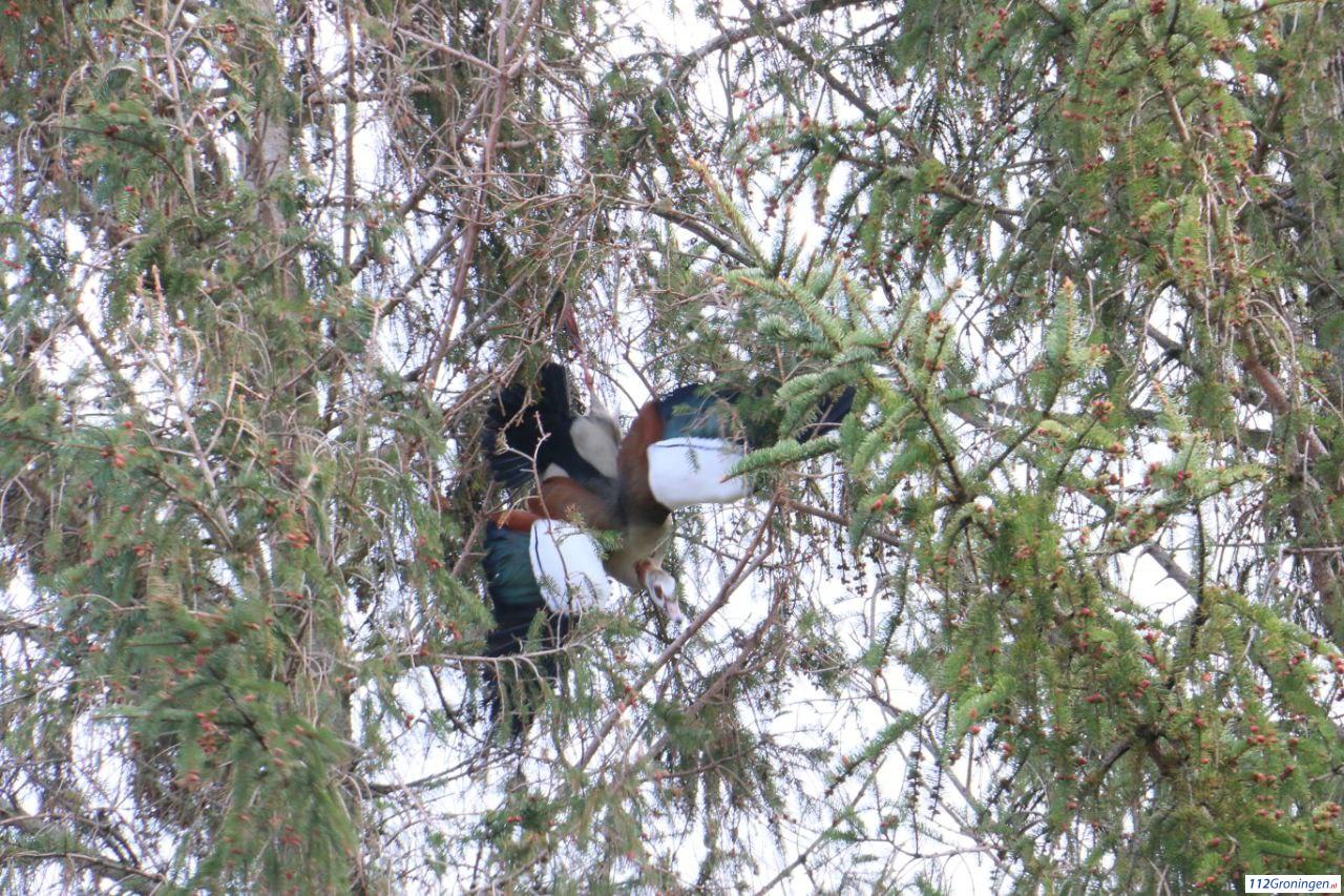 Ter plaatse bleek er een Nijlgans vast te zitten in een boom. De Nijlgans is vast komen te zitten door visdraad om zijn poten. De Nijlgans is door brandweer losgemaakt en vervolgens na een korte achtervolging gevangen en overgedragen aan de dieren ambulance
