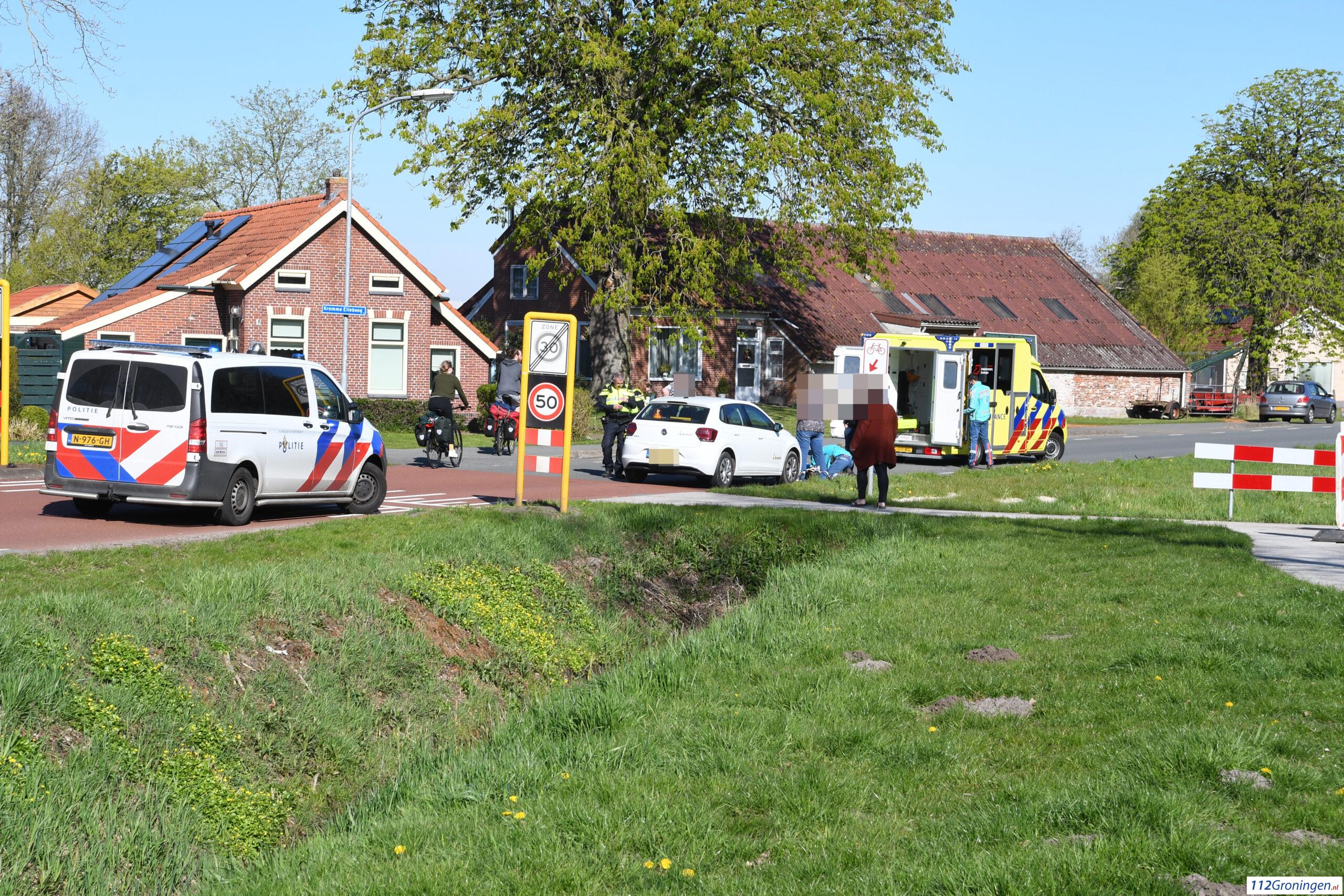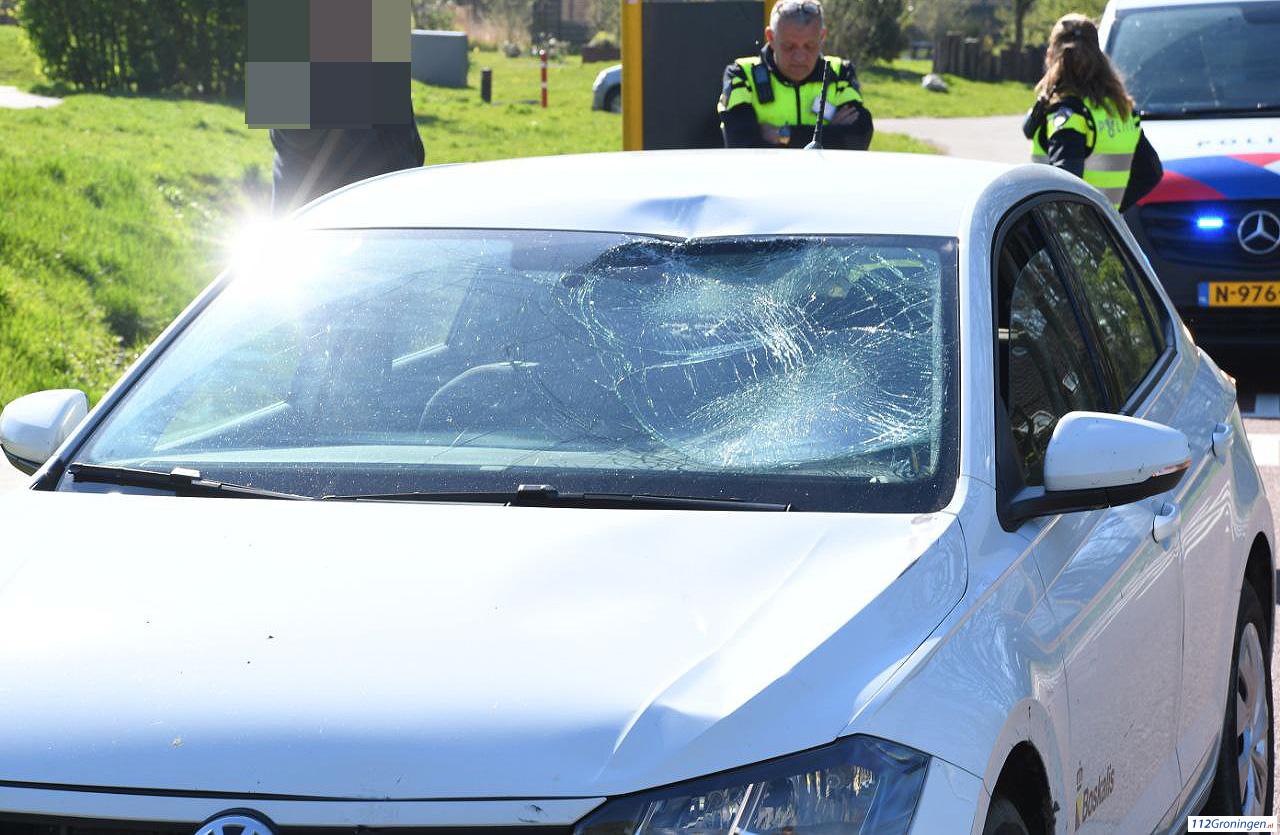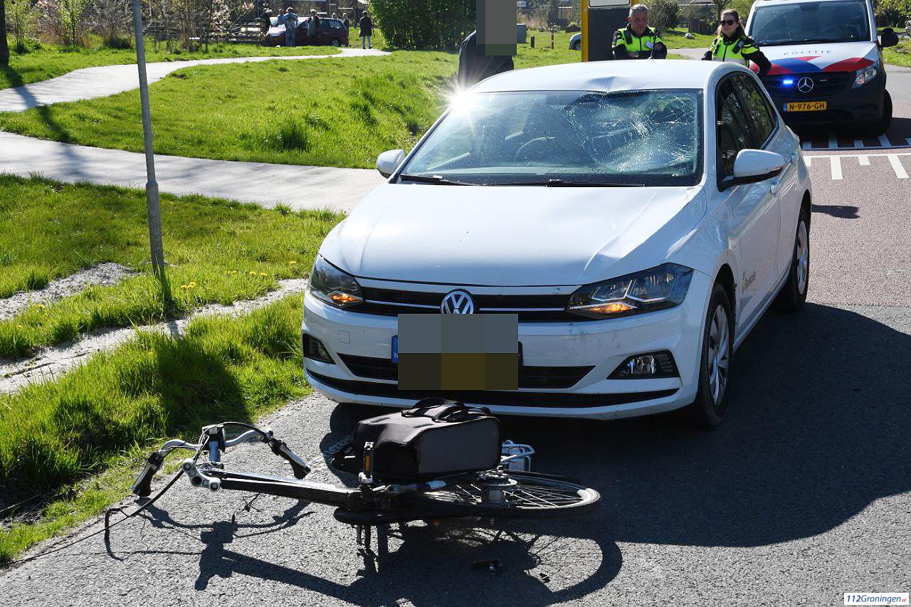 Een fietsster werd bij het oversteken geschept door een automobilist. Het voorwiel brak daarbij af. De vrouw liep daarbij een forse hoofdwond op. Buurtbewoners gaven meteen eerste hulp. Ze werd  in een ambulance behandeld en daarna overgebracht naar het Ommelander Ziekenhuis bij Scheemda. De auto werd afgesleept door berger Fruitema. De politie onderzoekt de exacte toedracht van het ongeval.