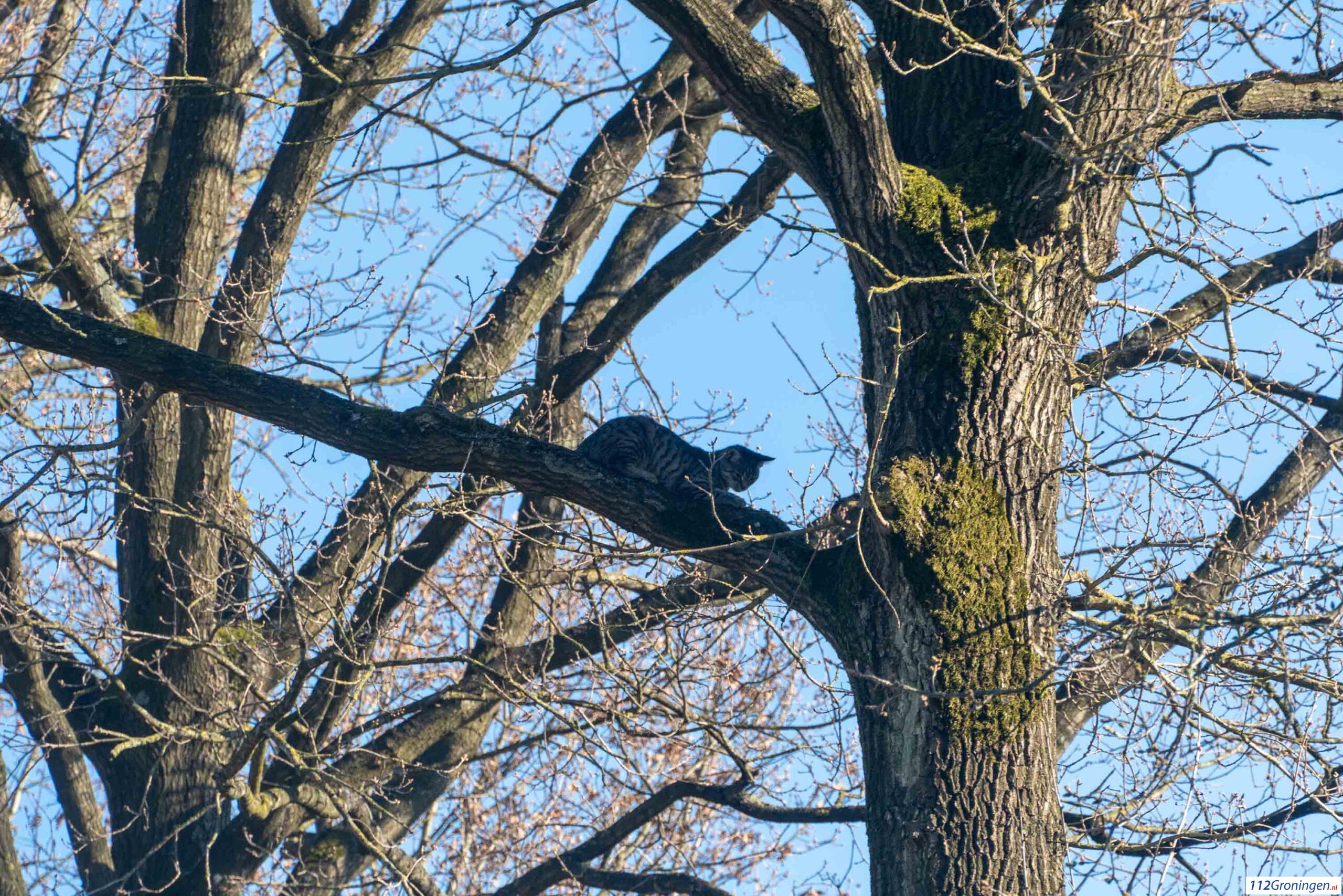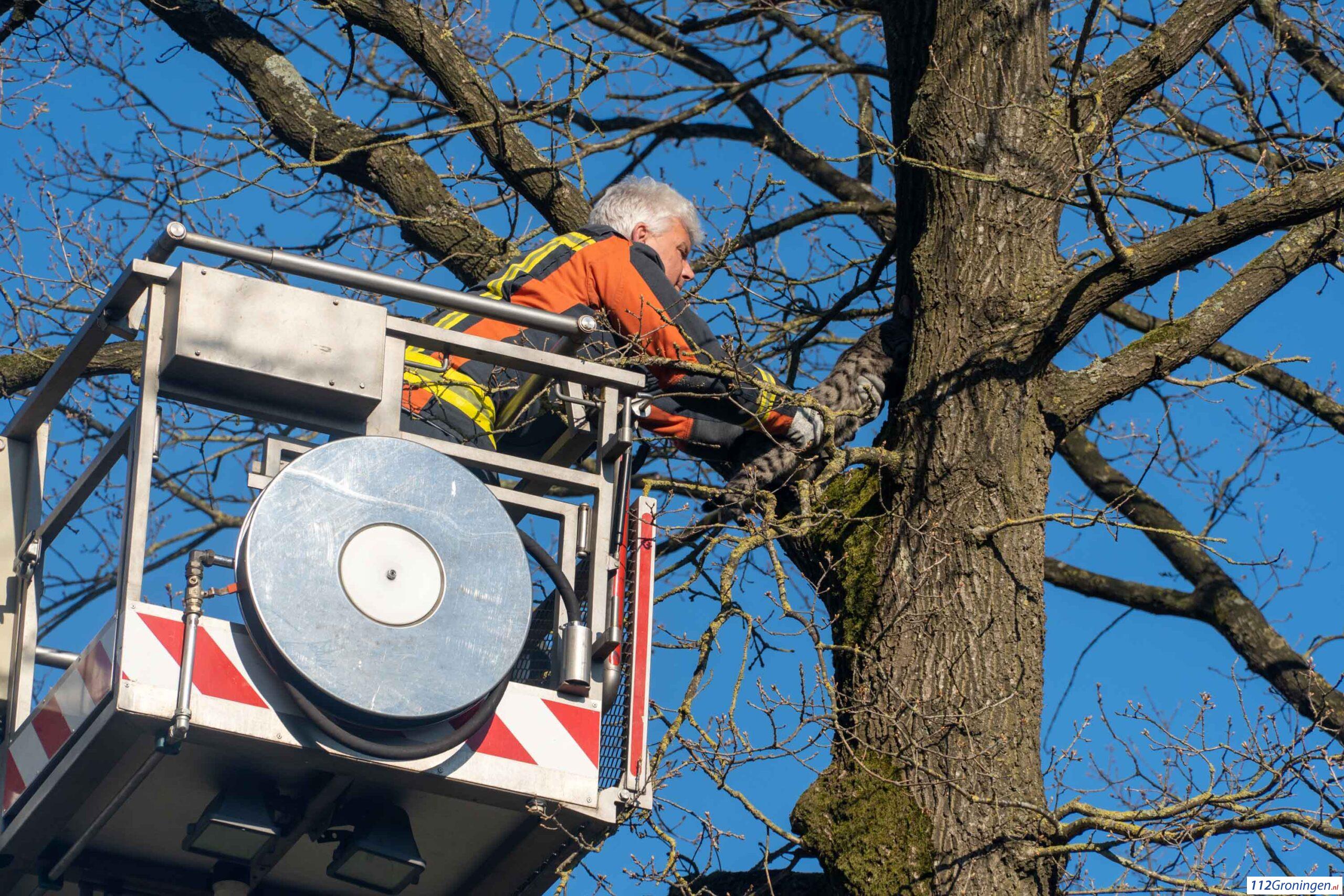 Ter plaatse bleek er al geruime tijd een kat vast te zitten in de boom. Omdat het beestje niet meer zelfstandig naar beneden durfde is de brandweer met een hoogwerker omhoog gegaan en heeft de kat uit de benarde positie bevrijd. Eenmaal op de grond werd de kat met open armen herenigd met het baasje.
