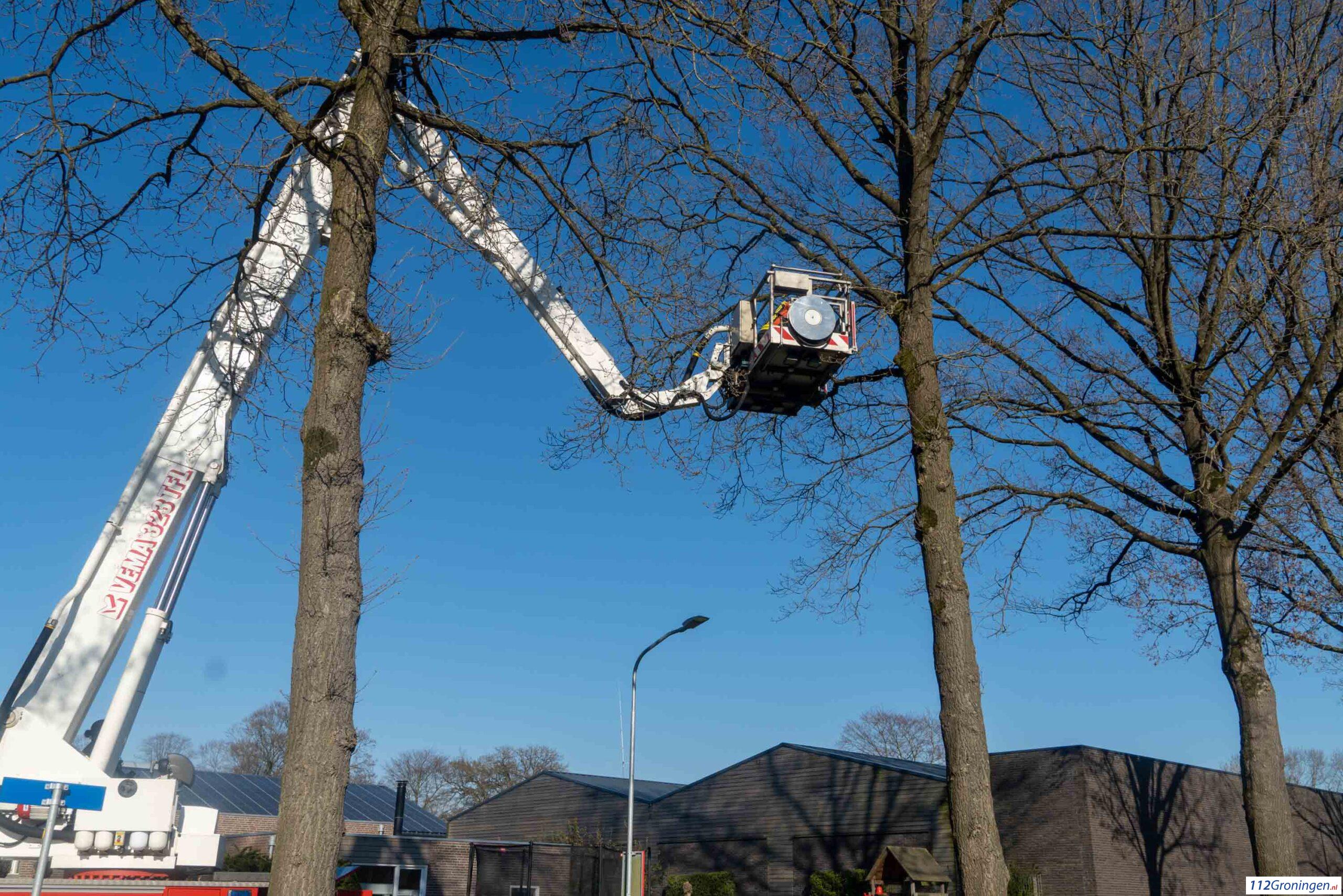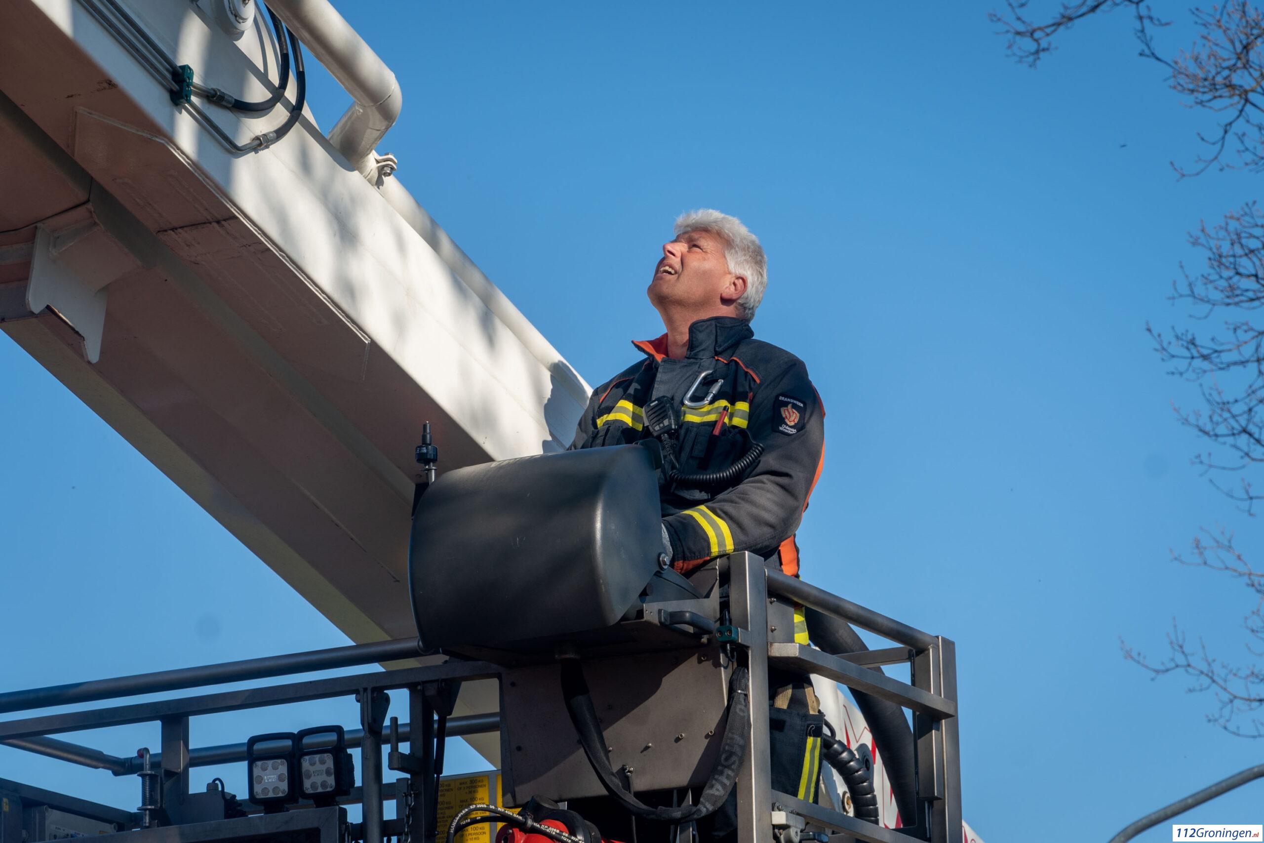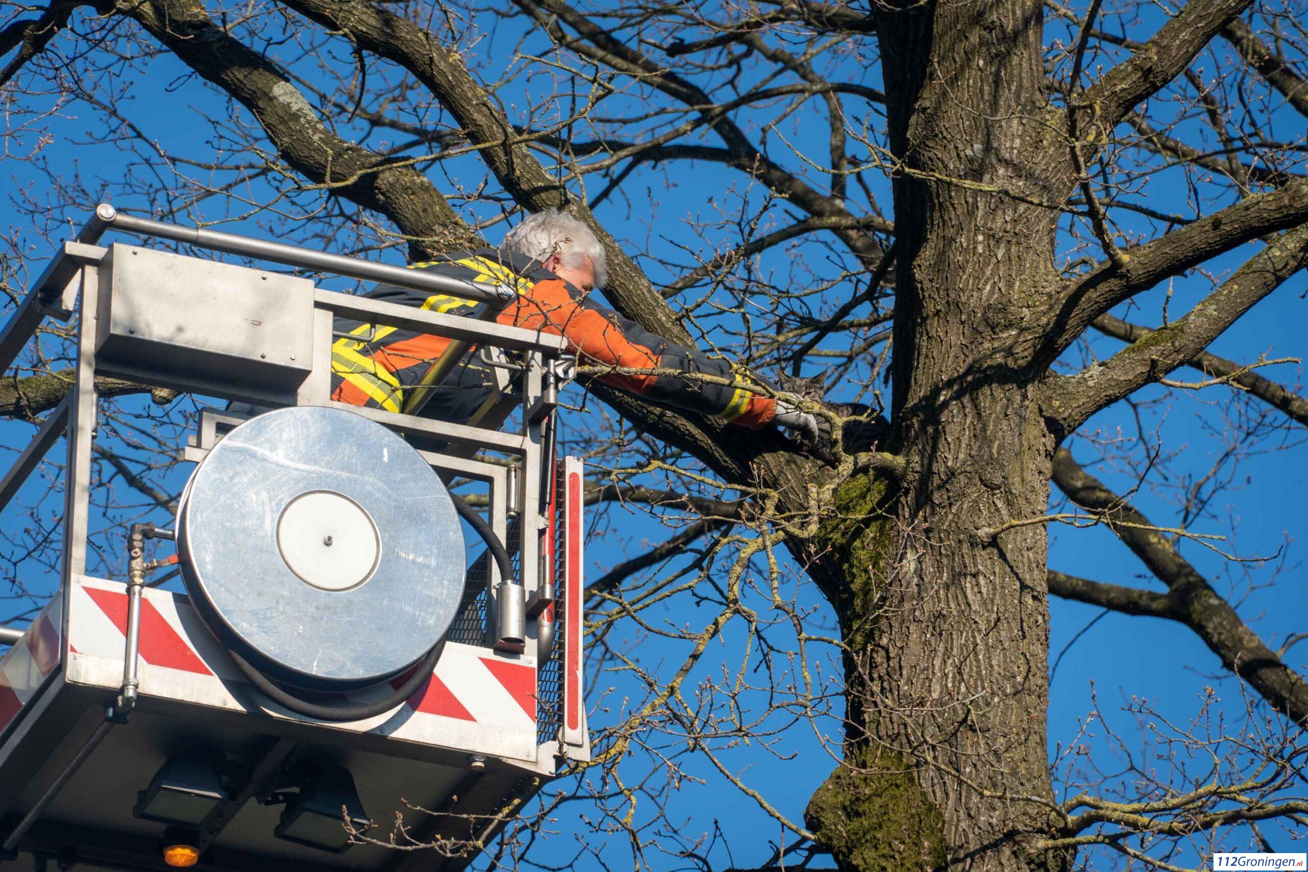 De brandweer van Winschoten werd maandagmiddag rond 17:30 opgeroepen voor een dier op hoogte aan de Wielewaallaan in Bellingwolde.