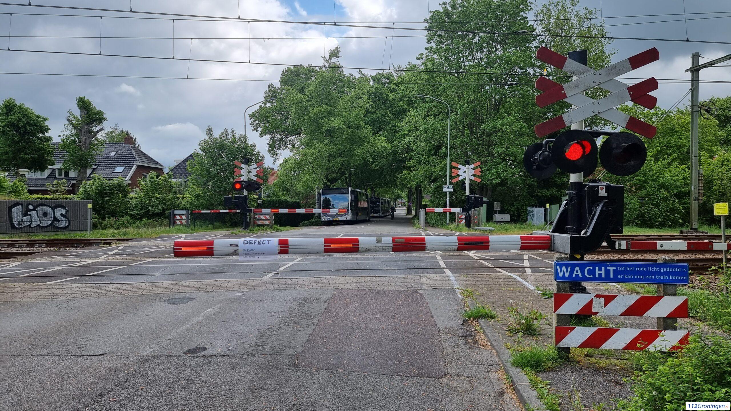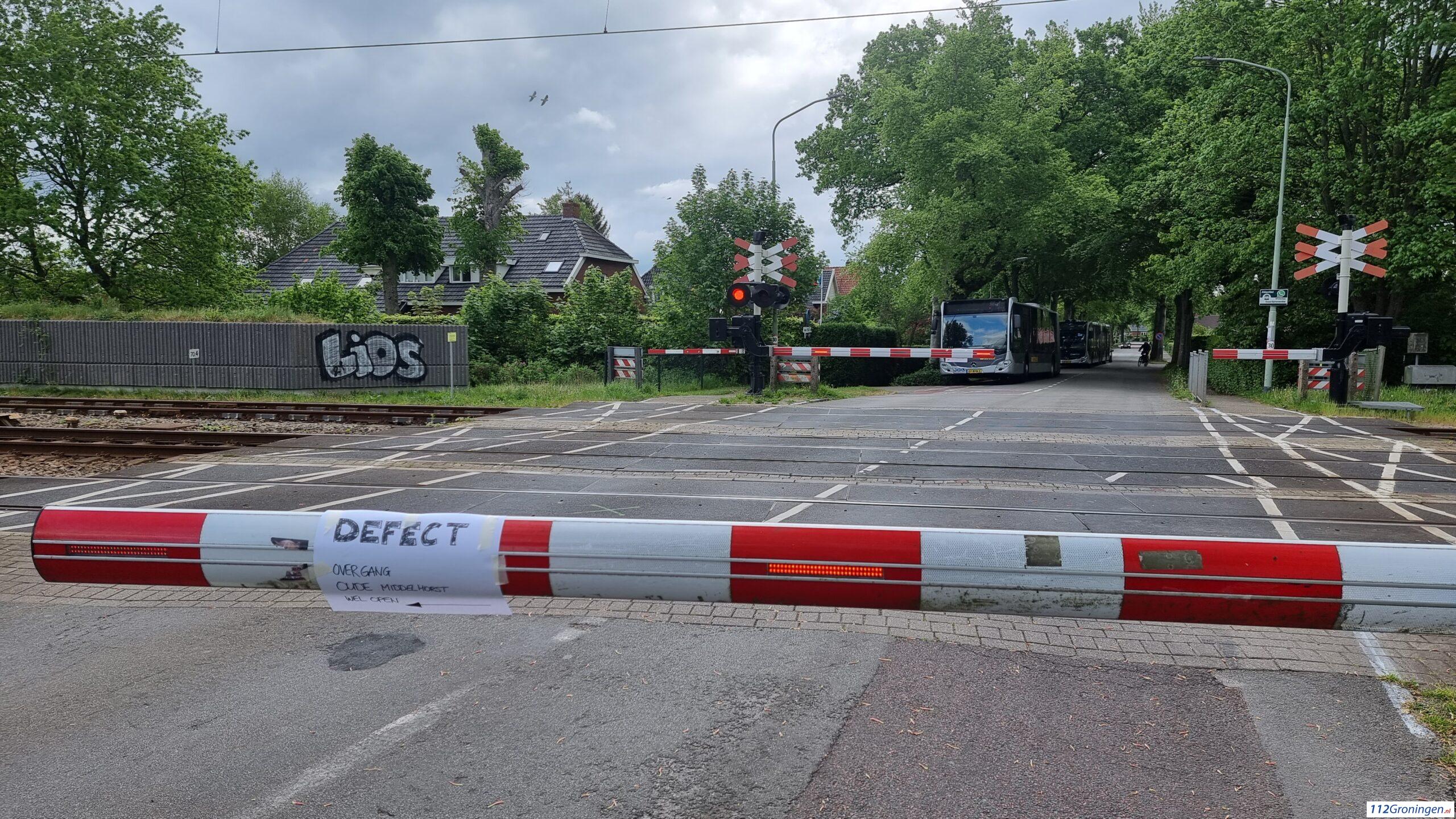Haren – De spoorwegovergangen aan de Waterhuizerweg en de Scharlakenlaan zijn defect. Op de spoorbomen aan de Waterhuizerweg hangt een papier met defect.