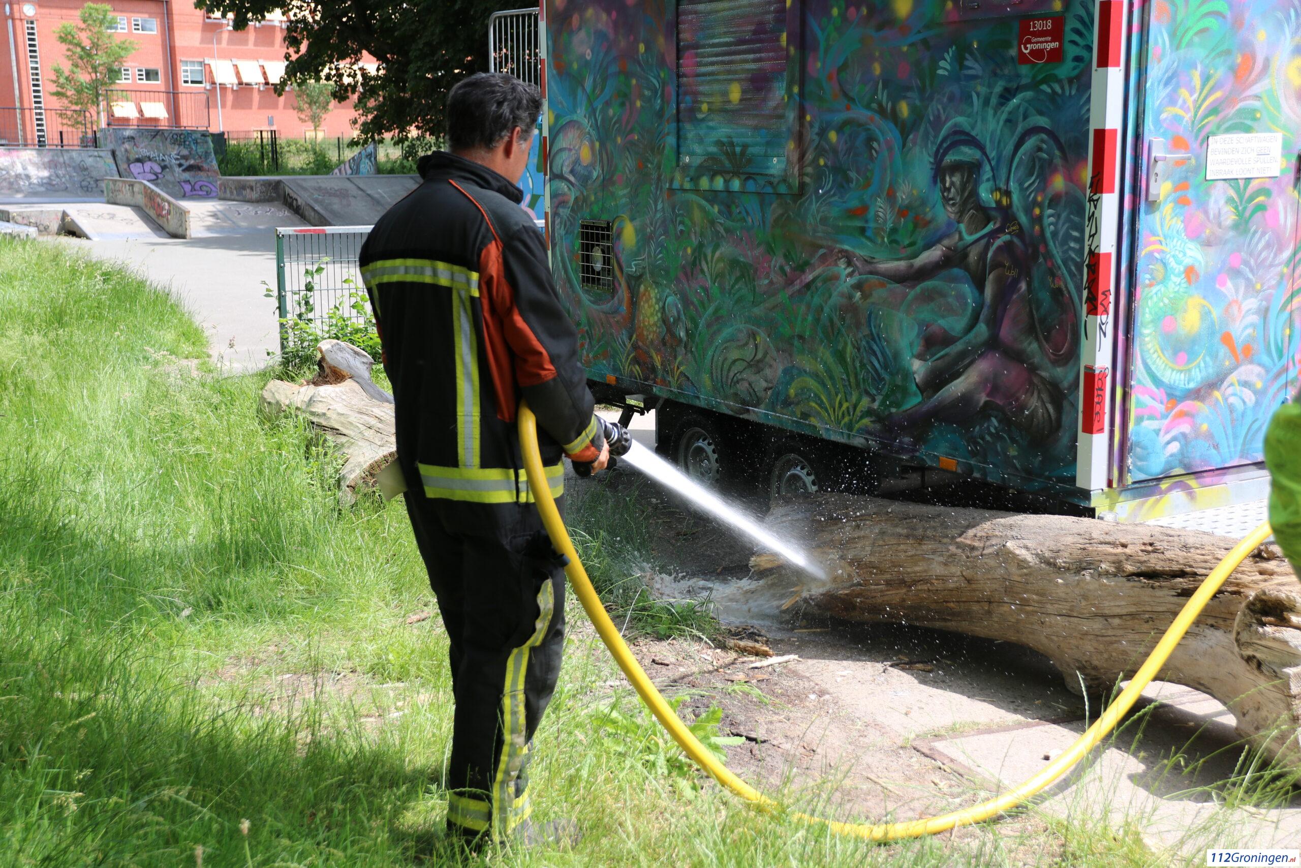 Groningen- Bij de skatebaan aan de Helperzoom heeft zaterdagmiddag een boomstam lopen smeulen. De brandweer heeft de boomstam afgeblust. De oorzaak is niet bekend.