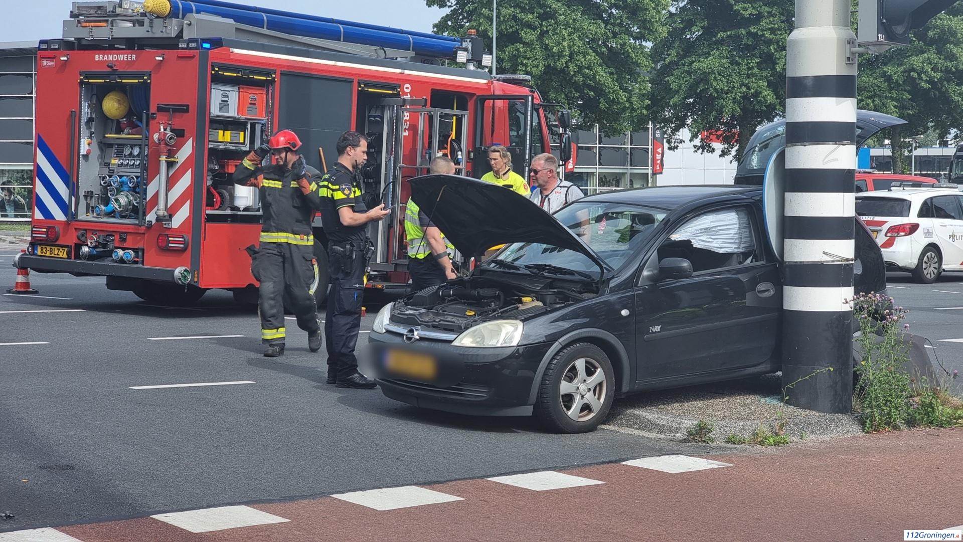 De inzittenden van de auto zijn via de kofferbak uit de auto gekomen. Daarbij zat een persoon bekneld. De toedracht is niet bekend.
