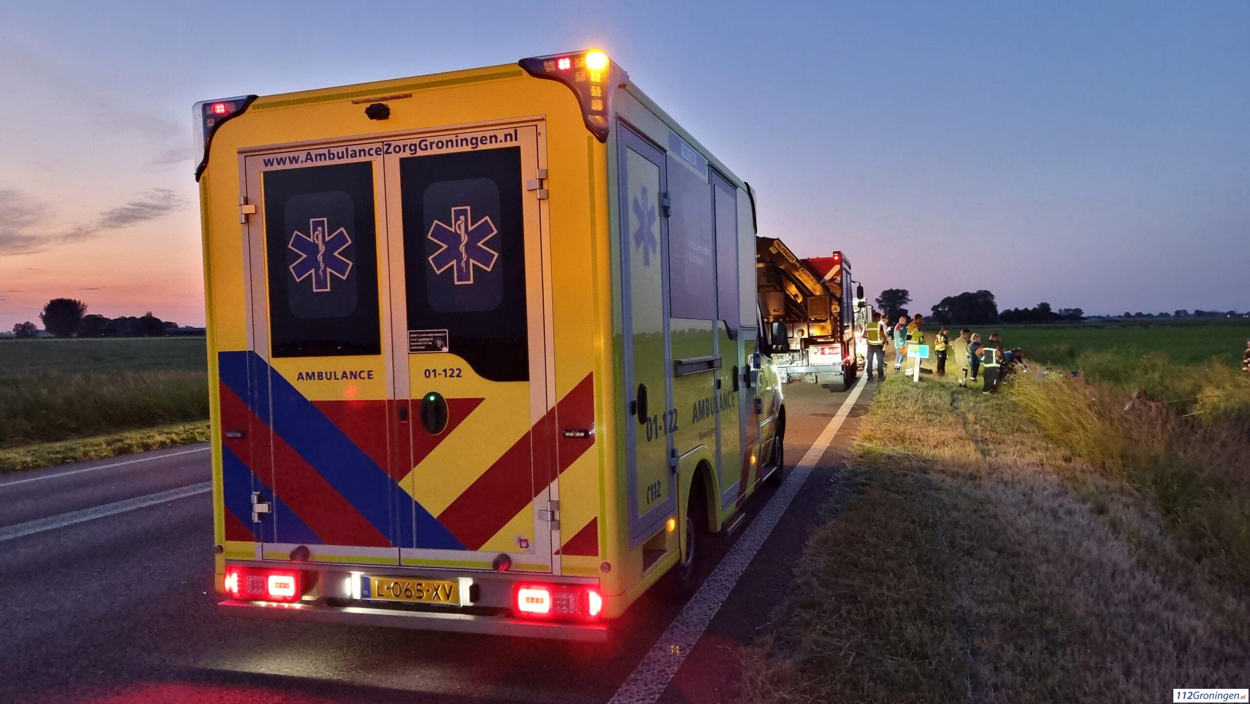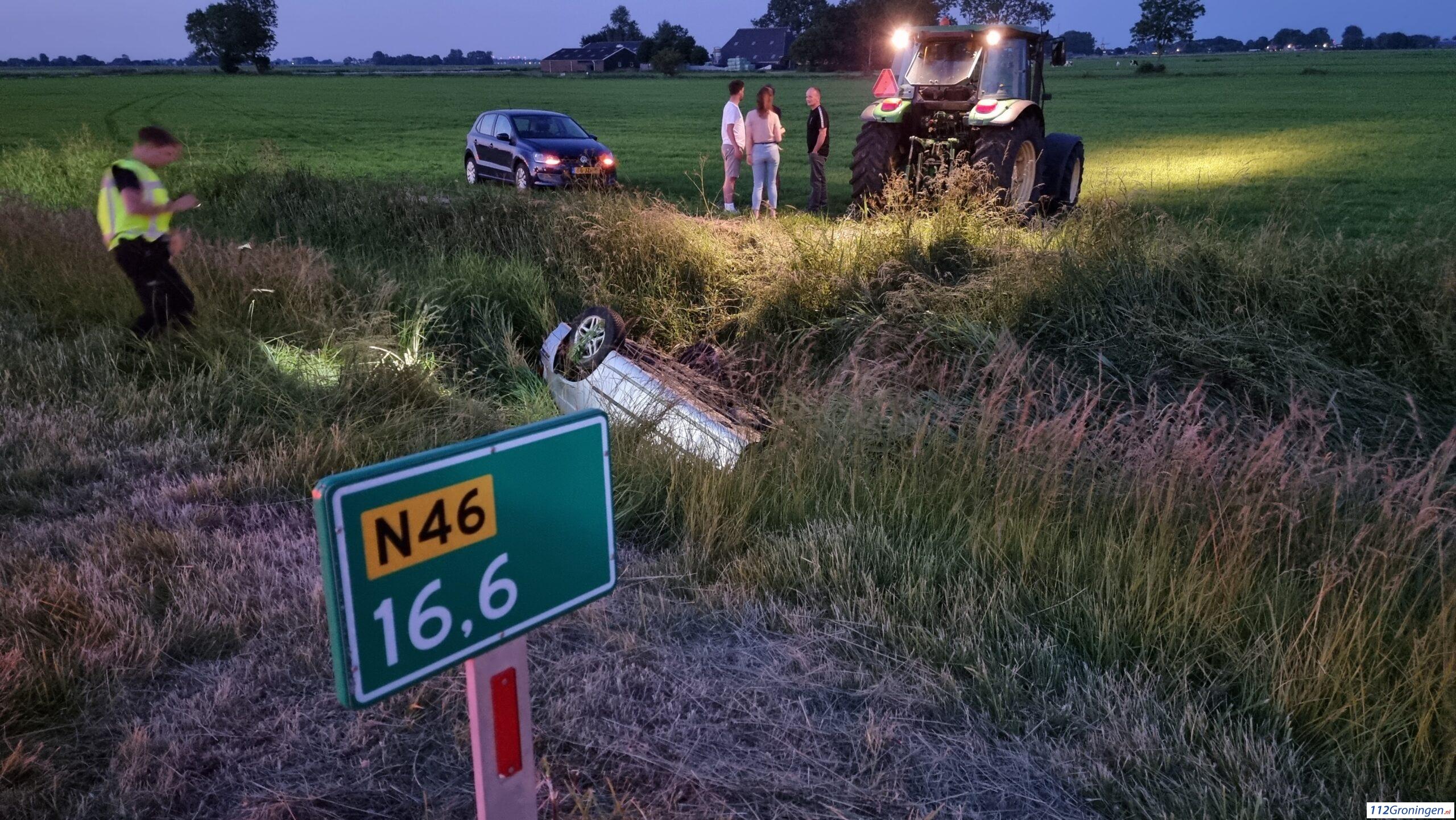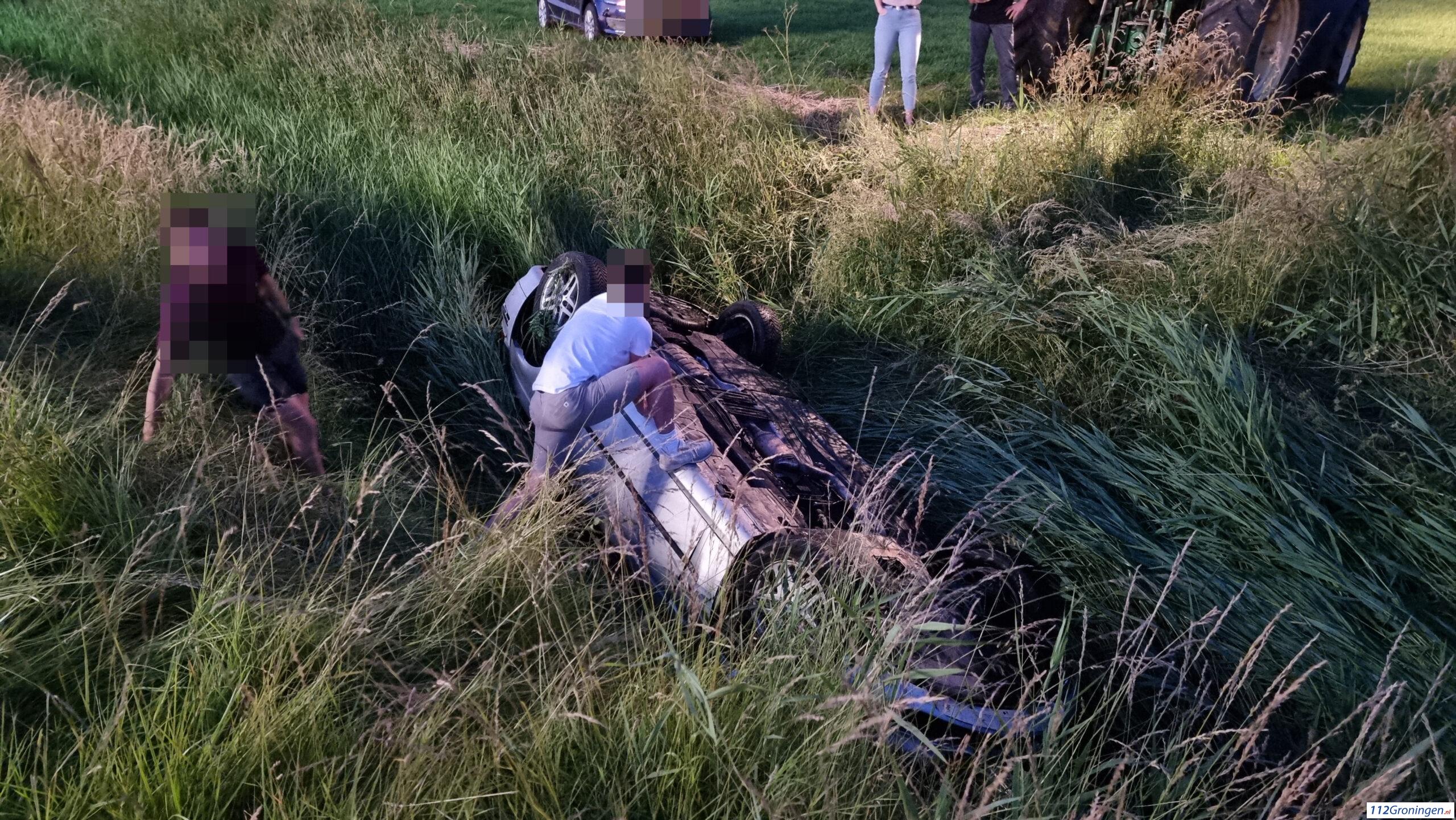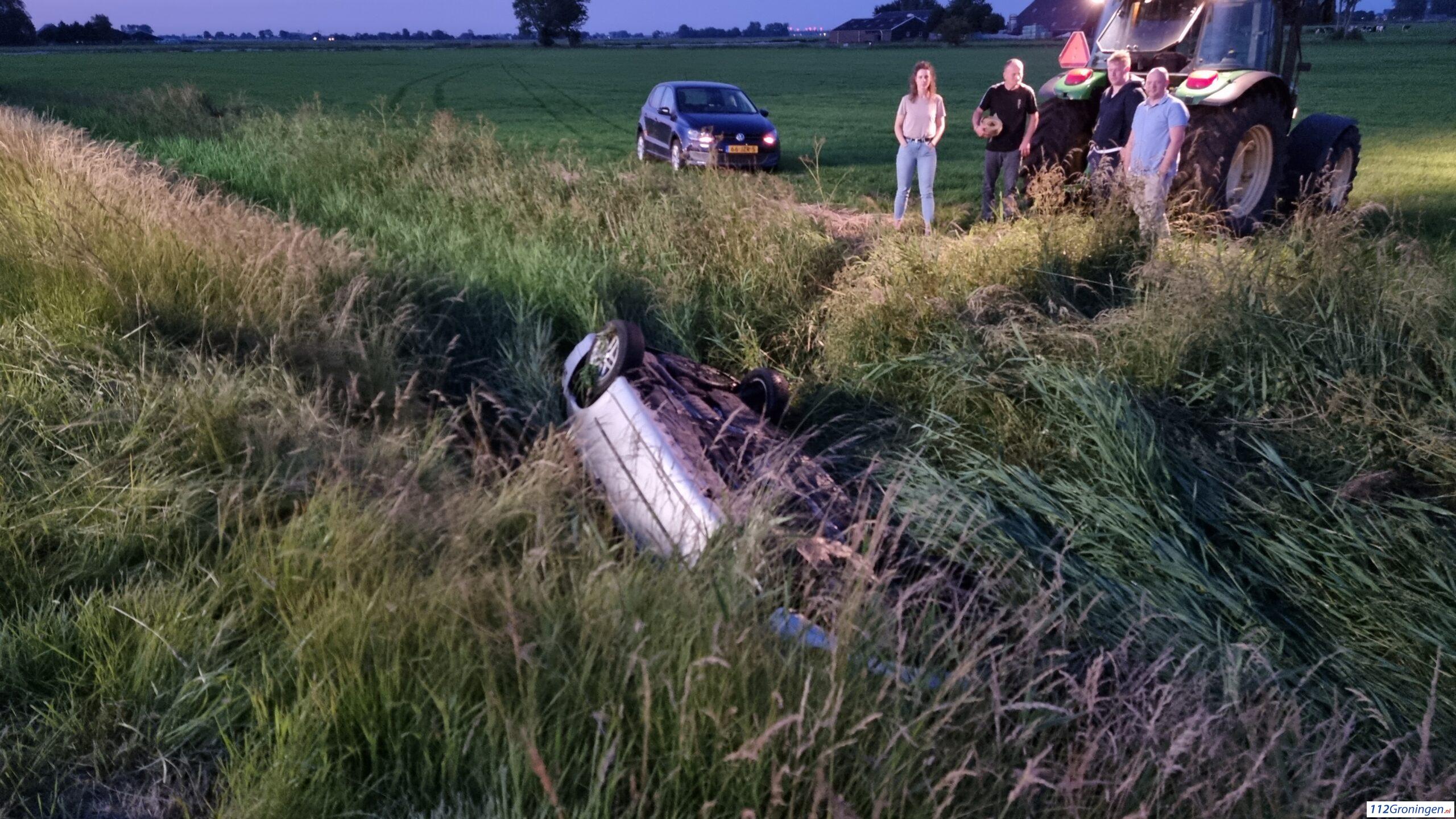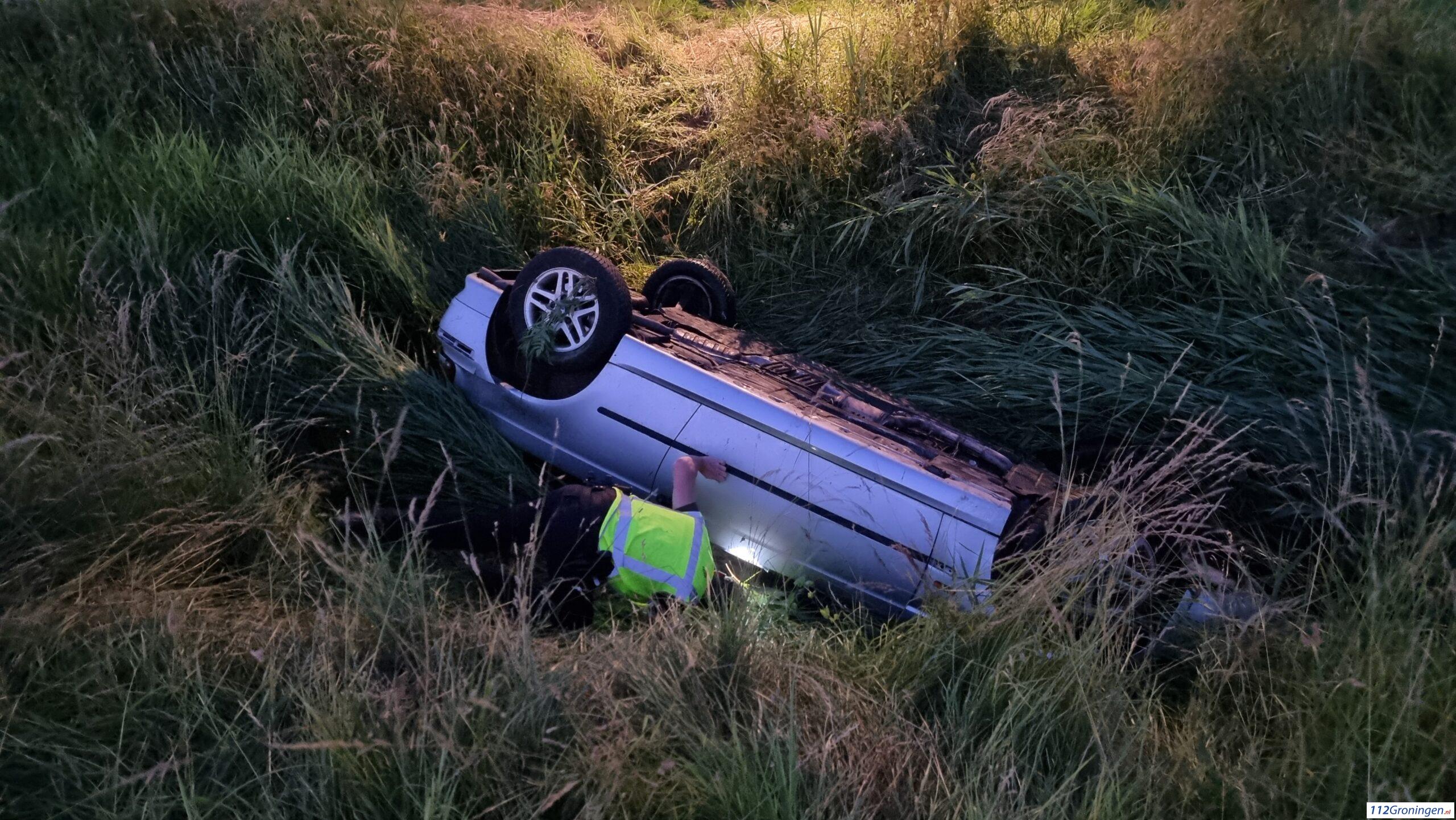 Hoe het ongeluk is ontstaan, is niet bekend. De auto belandde ondersteboven in een sloot, waarop ook duikers van de brandweer naar de Eemshavenweg werden gestuurd.