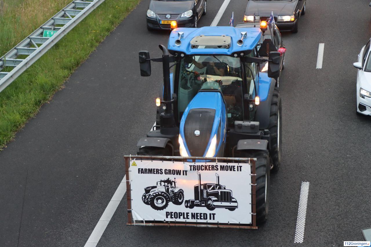 Boeren uit de gehele provincie waren maandagavond weer met hun trekkers, hakselaars, auto’s en vrachtwagens de weg op om te protesteren tegen het stikstof beleid. De boeren deden dat onder andere bij de grensovergangen bij Ter Apel, Bellingwolde en Bad Nieuweschans. Ook de A7 bij Marum, Leek, Winschoten en Oudeschans was een mooie spot voor de boeren. Zo hielden ze de weg Groningen – Leek dicht en ook Leek – Groningen. Ook door de grens kwam niemand meer.
