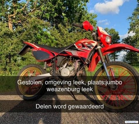 Leek – Deze schakelbrommer is gestolen in Leek. Door een getuige zijn twee jongens, met deze brommer en een andere scooter gisteren rond 19:45 uur nog gezien op het Diepswal in de richting van Zevenhuizen.