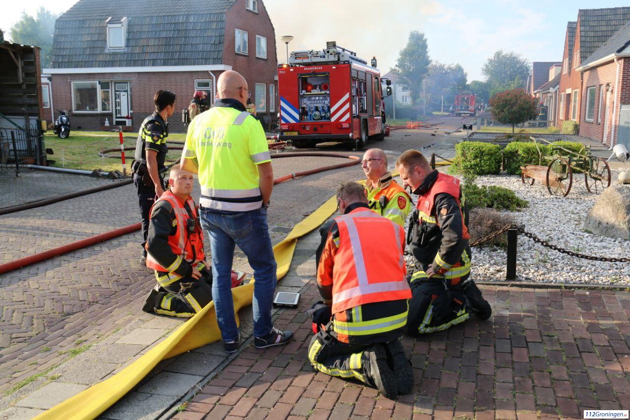 Oude Pekela – Aan de Hanekampswijk in Oude Pekela is woensdagnacht een brand in een schuur overgeslagen op de woning. Rond zes uur werd de brandweer opgeroepen en er werd al snel opgeschaald. De brand was bij aankomst al uitslaand. Mogelijk gaat het om een XTC lab melden andere media.