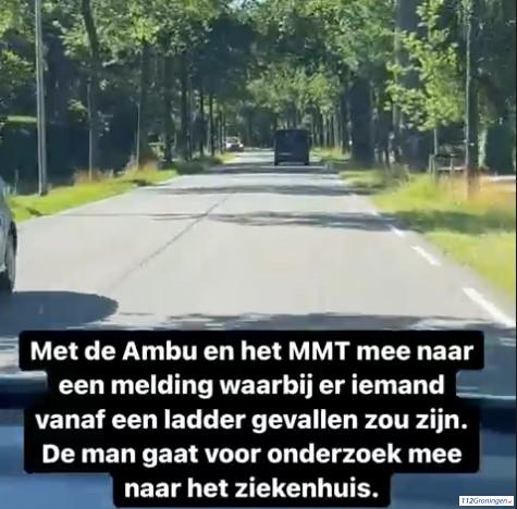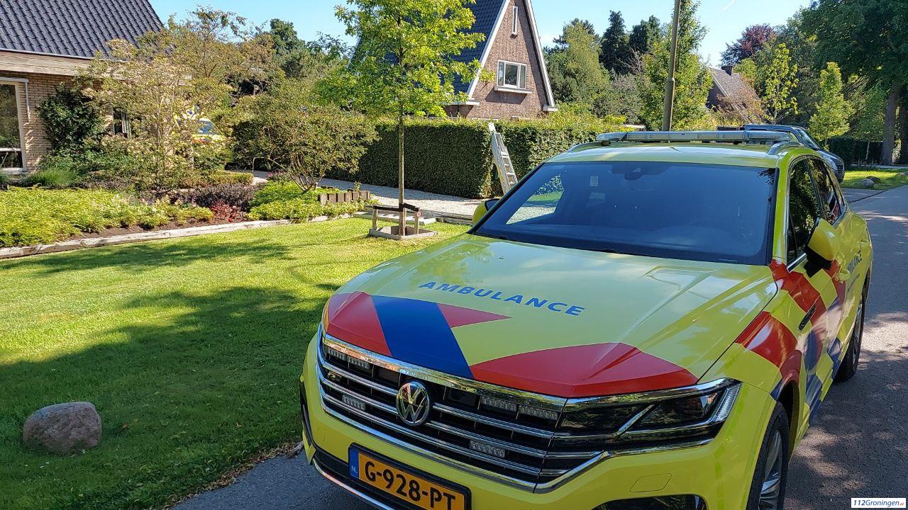 Glimmen – Bij een woning aan de Brinkweg in Glimmen is zaterdagmorgen rond 10:00 uur iemand van een ladder gevallen achter een woning.