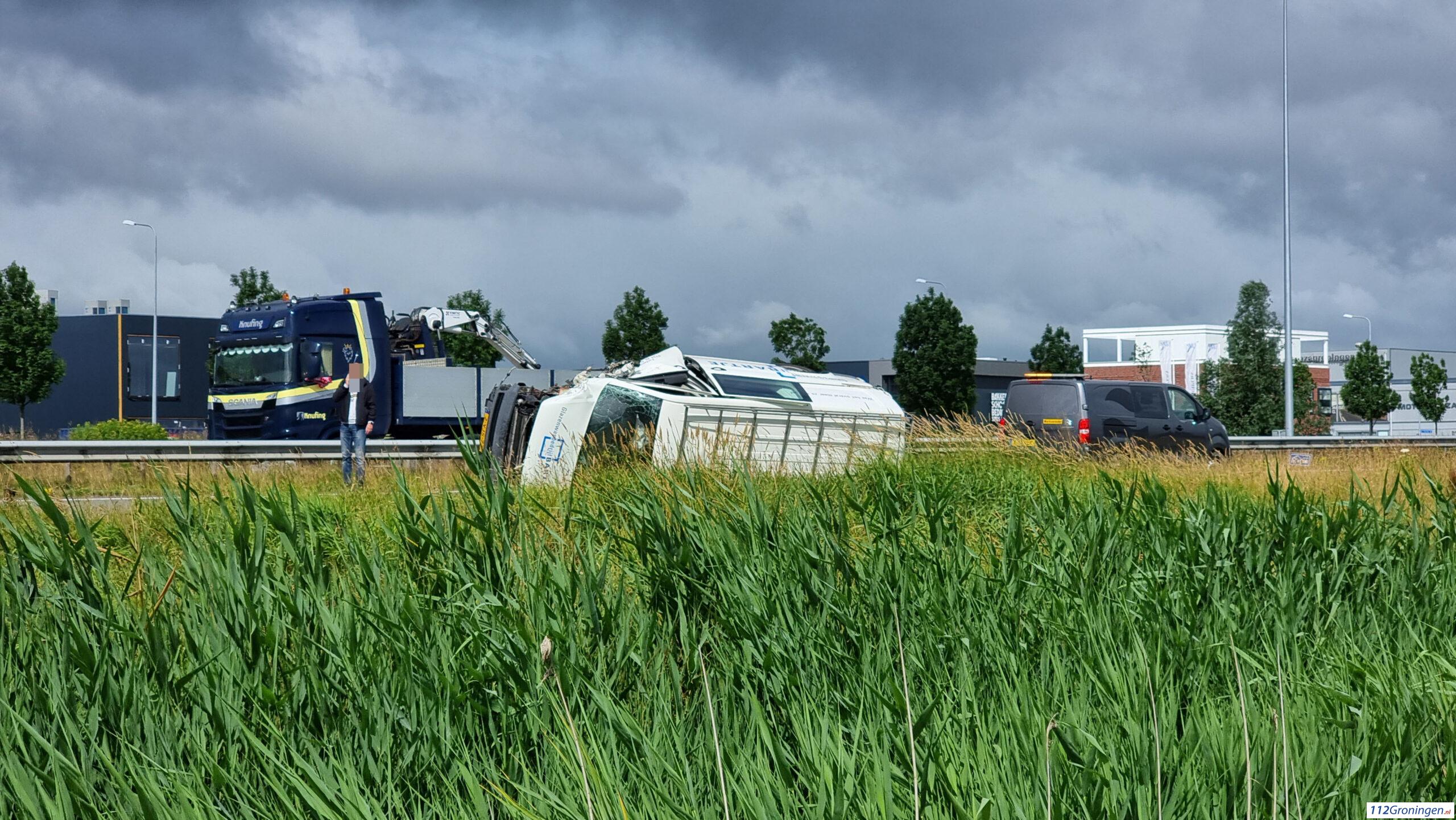 1 bestelbusje is hierbij gekanteld. De weg is volledig dicht vanaf Hoogezand. Drie mensen raakten gewond. Ze gingen naar het ziekenhuis voor behandeling. Een berger heeft de voertuigen geborgen.