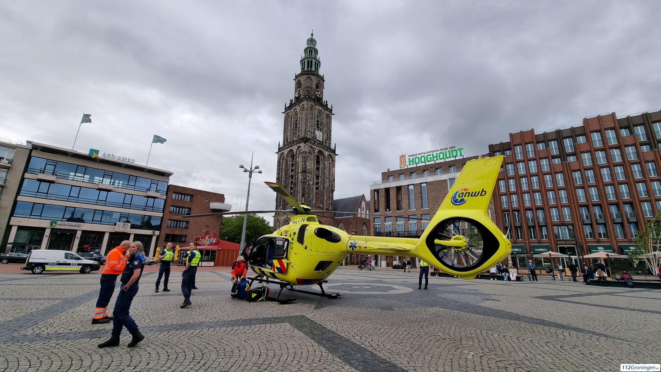 De straat wordt afgesloten door de hulpdiensten. De traumahelikopter is daarbij ook aanwezig en was op de Grote Markt geland. Er is veel onrust in de straat.