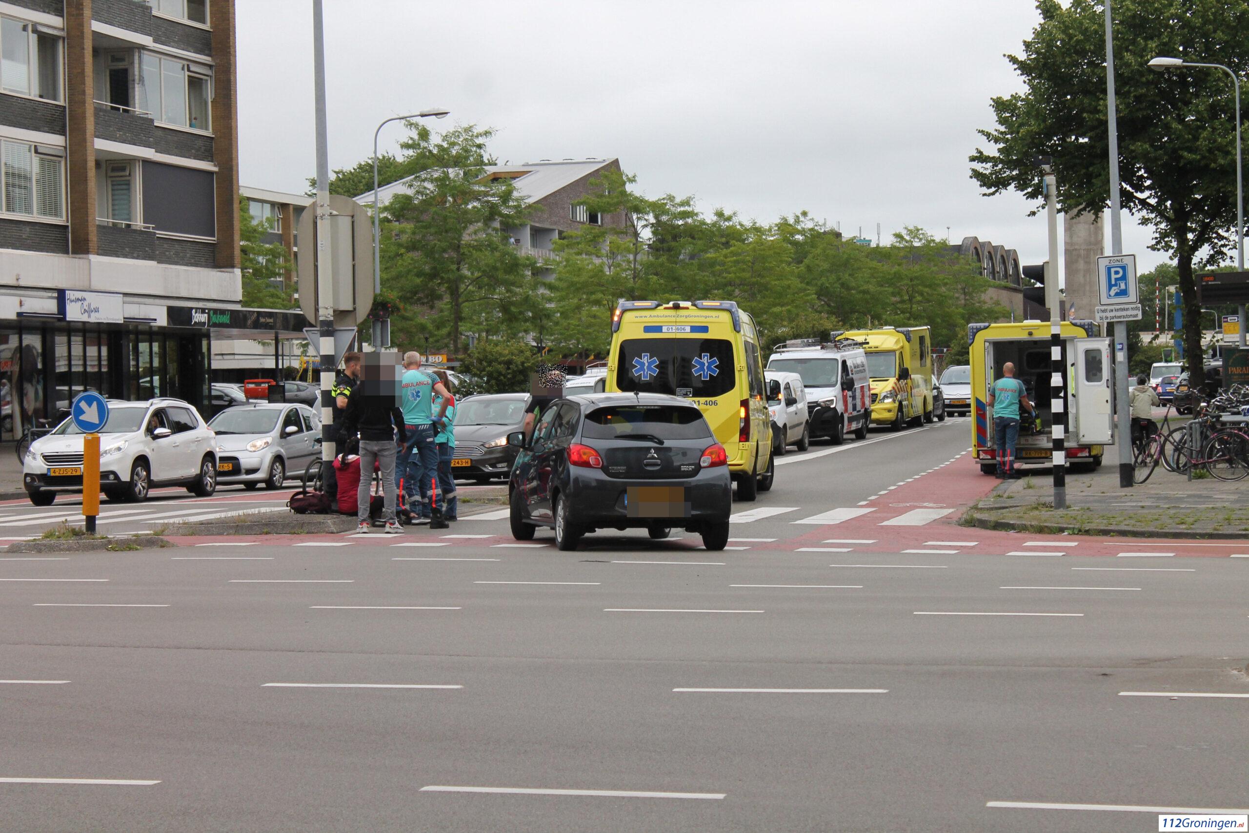 Het verkeersongeval gebeurde omstreeks tien voor vier op de kruising met de Paterswoldseweg. Door een nog onbekende oorzaak kwamen een automobilist en een scooterrijdster met elkaar in botsing. De vrouw die op de scooter reed kwam hard ten val op het wegdek.