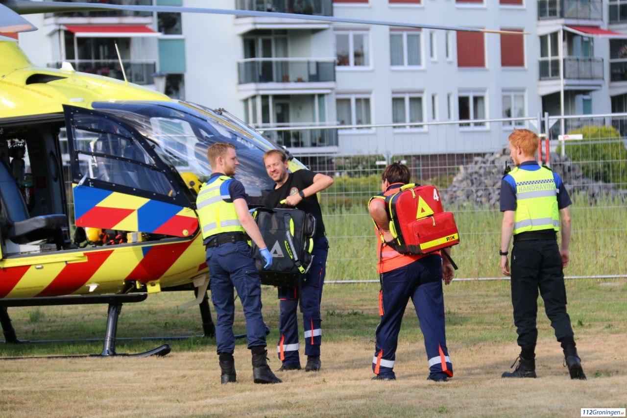 Naast twee politievoertuigen, twee ambulances was de traumahelikopter er ook.