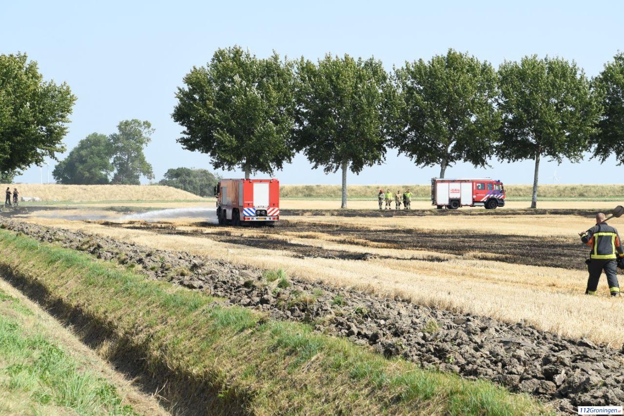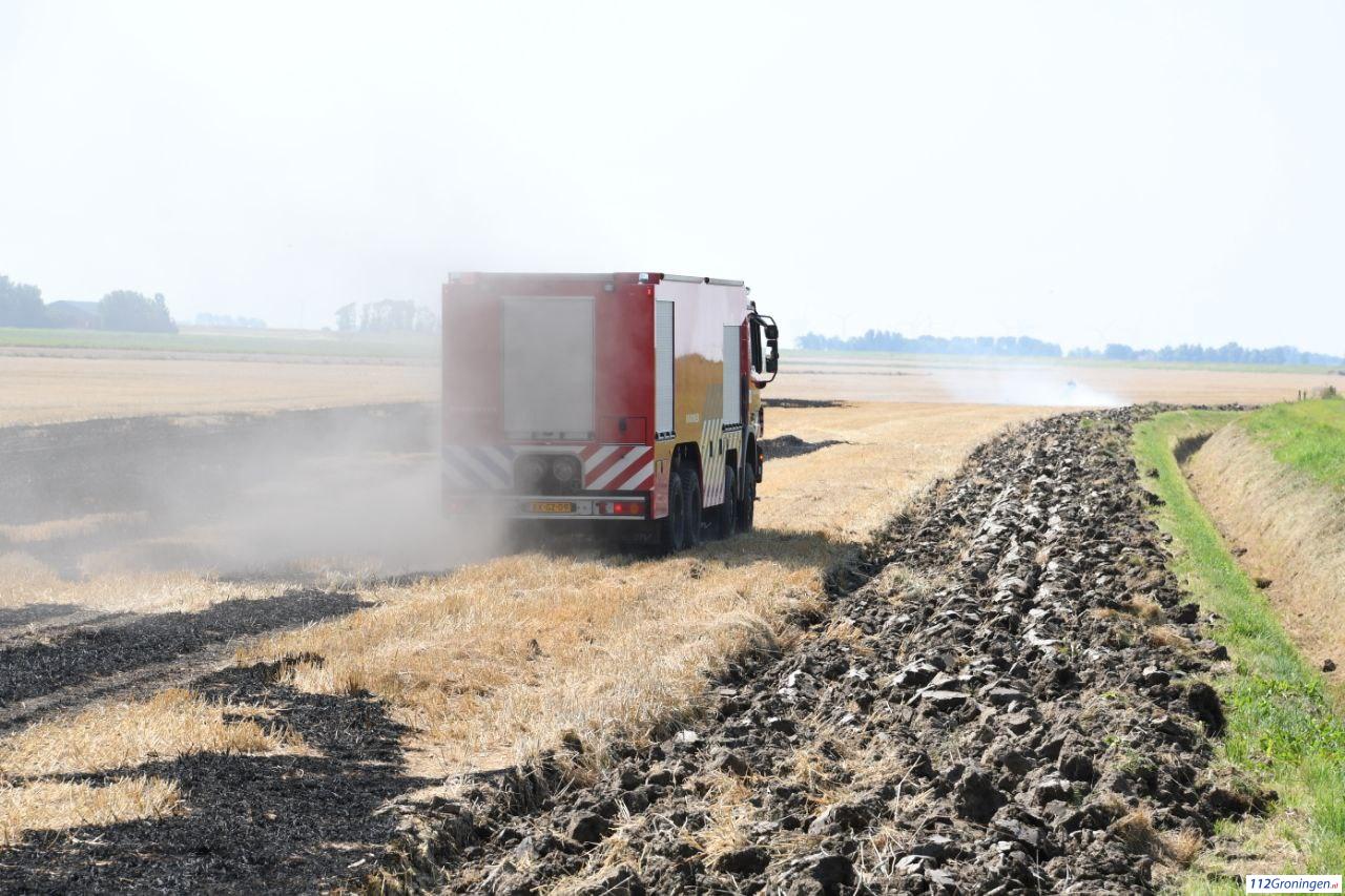 Groot stuk akker in de brand in Termunten, brandweer zet waterkanon in