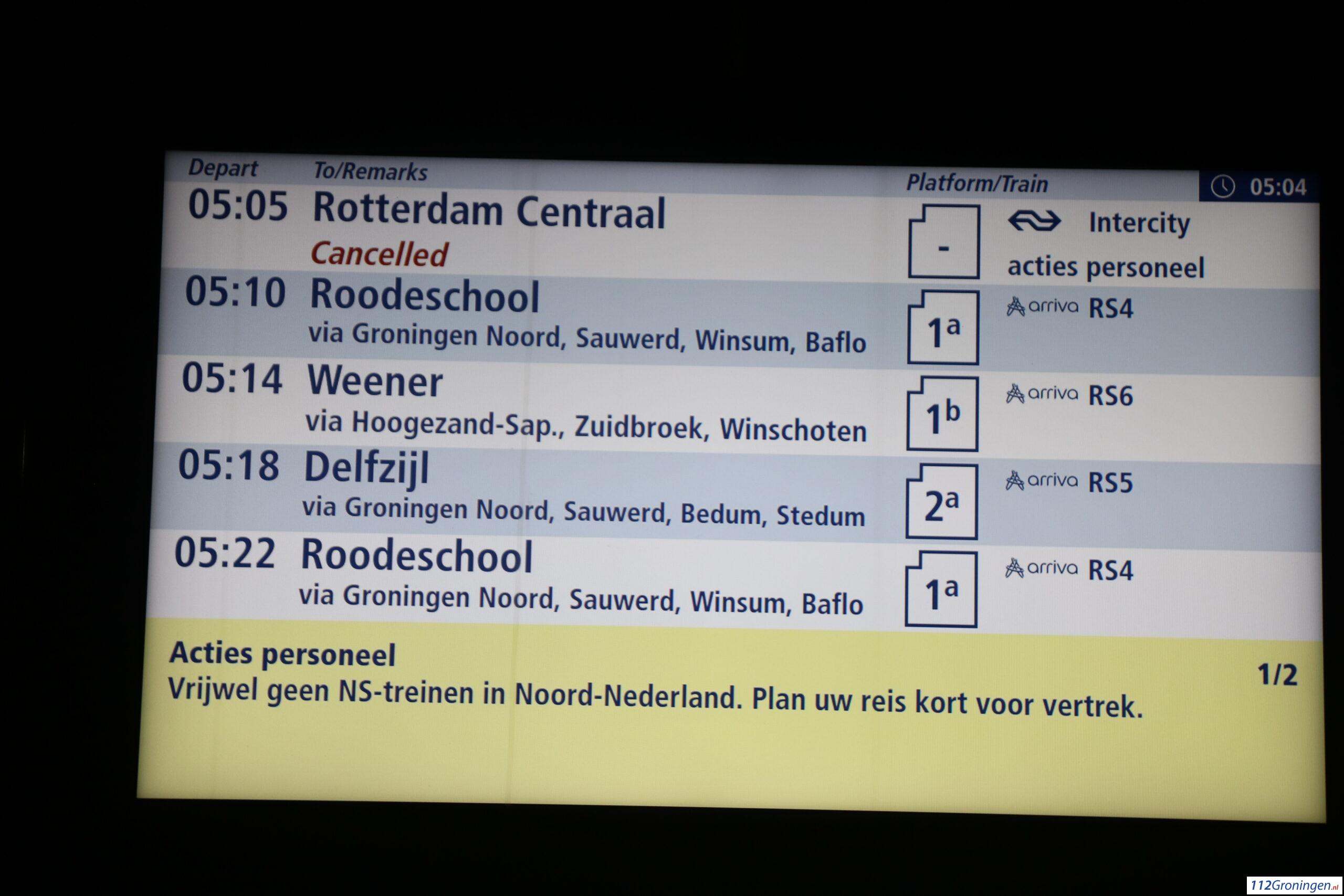 Groningen – In het Noorden van het land rijden woensdag geen NS-treinen. Personeel staakt voor een betere cao. Vakbond FNV roept op tot solidariteit. De regionale treinen van Arriva rijden wel. Dat meldt Oogtv