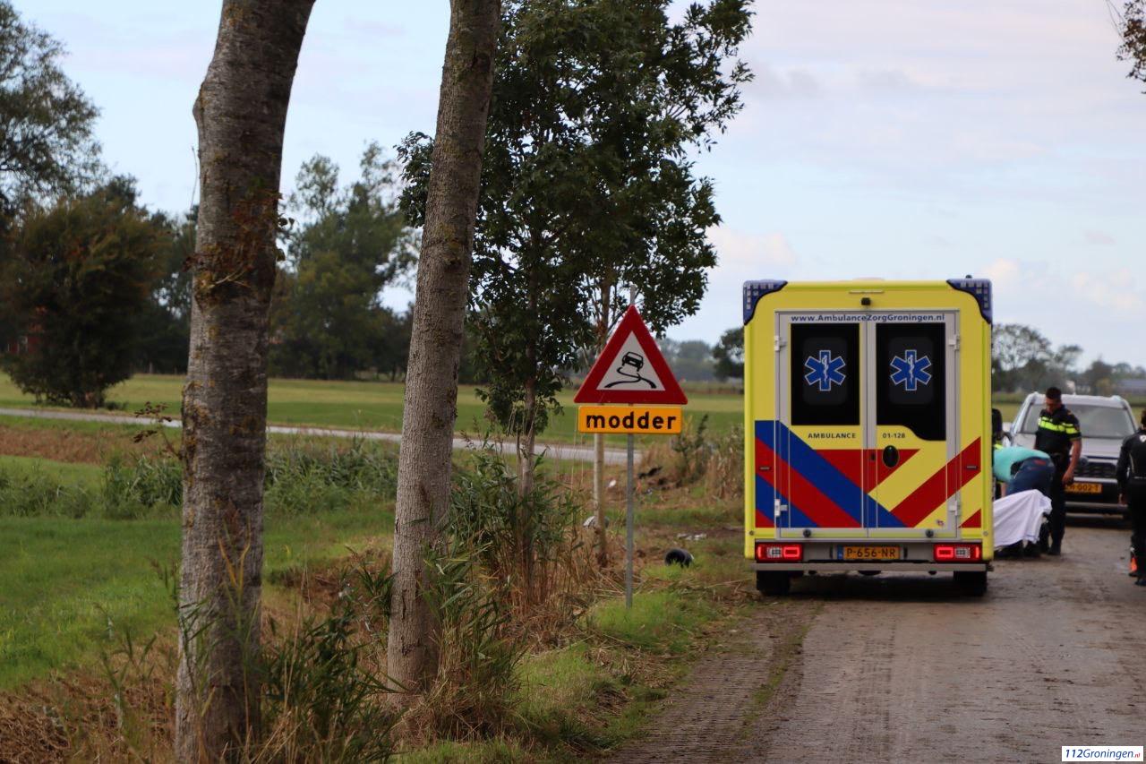 Het ambulance personeel verleent hulp aan het slachtoffer of het slachtoffer mee moet naar het ziekenhuis is niet bekend, hoe het ongeluk kon gebeuren is niet bekend. Wel staat er een bord langs de weg dat er modder op de weg ligt.