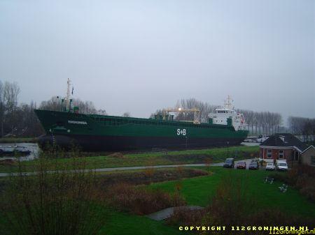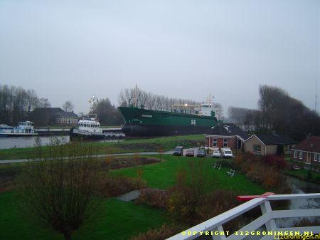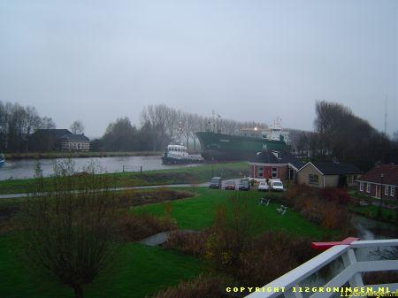 Bij Woltersum was zaterdagmiddag een grote boot. Het was een mooi gezicht. De boot ging naar Delfzijl.(Foto`s Robert Swijghuizen)