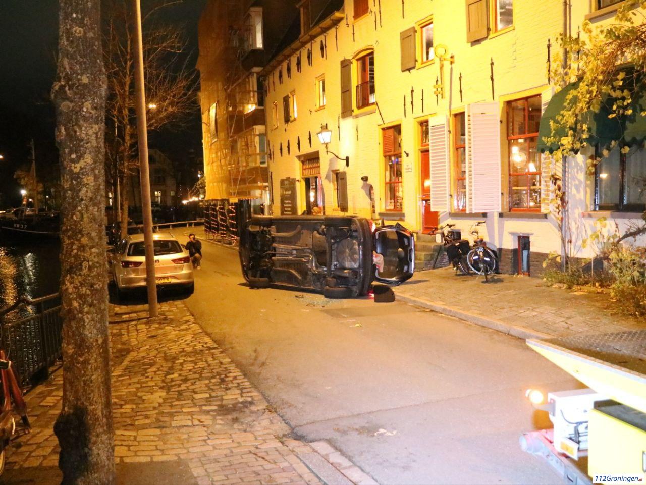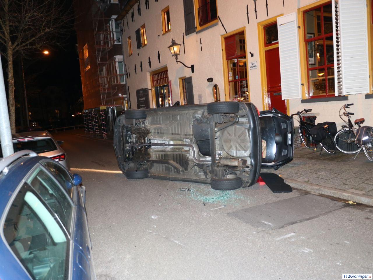 Groningen – Op de Noorderhaven kwamen donderdagavond twee auto’s met elkaar in botsing. De forse klap zorgde voor veel schade. Na het ongeluk zette één bestuurder het op een lopen, maar bezoekers van Café de Sleutel wisten de automobilist in de kraag te vatten.