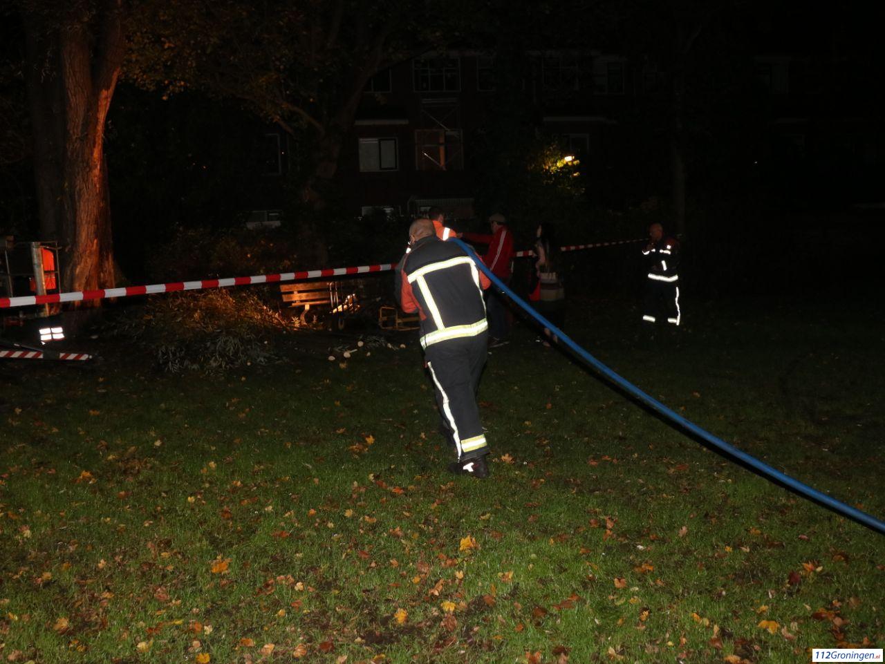 Groningen – Een grote boom die op een binnenplaats staat aan de Kruitlaan in de stad heeft zondagmiddag in brand gestaan.