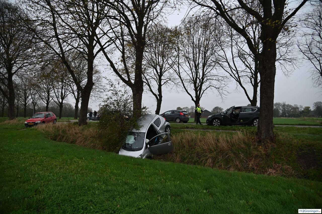 Beerta – Op de Ombocht/ Nieuweweg in Beerta zijn vrijdagmorgen om 08:25 uur door nog onbekende oorzaak twee auto’s tegen elkaar gebotst. Daarbij kwam een van de wagens in een droge sloot, alvorens eerst een boom werd geraakt.